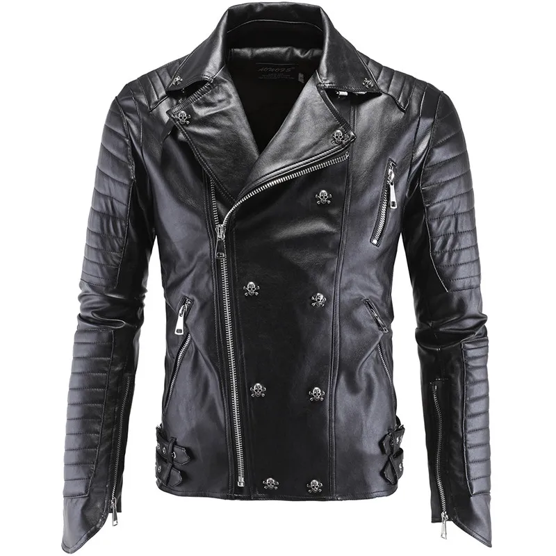 Куртка мужская кожаная в стиле панк, мотоциклетная байкерская куртк...