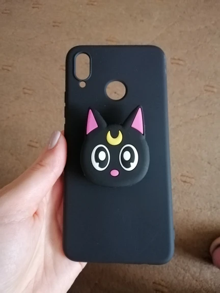 Чехол был хорошо упакован, дошёл быстро. Мягкий, кнопки нажимаются легко, надевается и снимается чехол также легко. Правда, я ожидала, что котик будет одним целым с чехлом, но он оказался капслокетом(или как это называется?). В общем, он приклетвается на чехол двусторонним скотчем, а также выполняет функцию подставки для телефона, несовсем устойчивой, но работающей и достаточно надёжной. Есть небольшой излишек резины на котике, но я его легко отрезала. Покупкой очень довольна