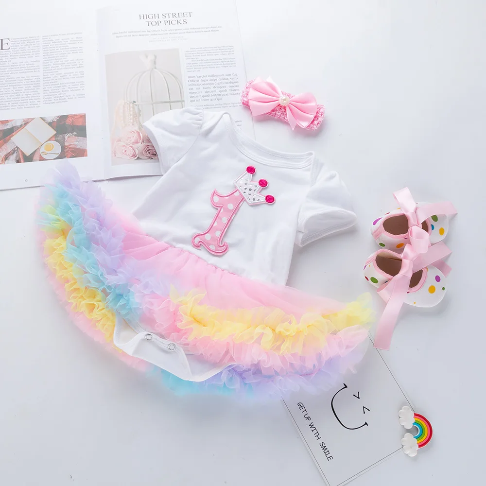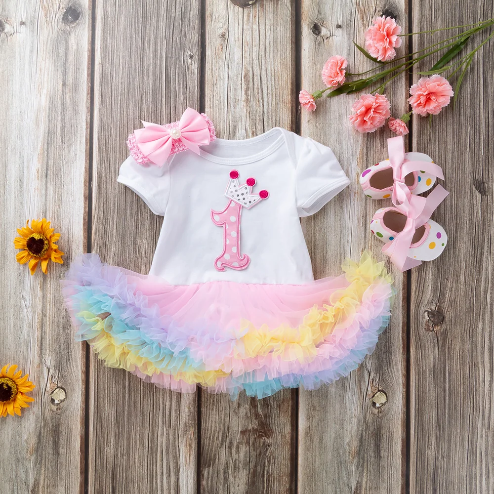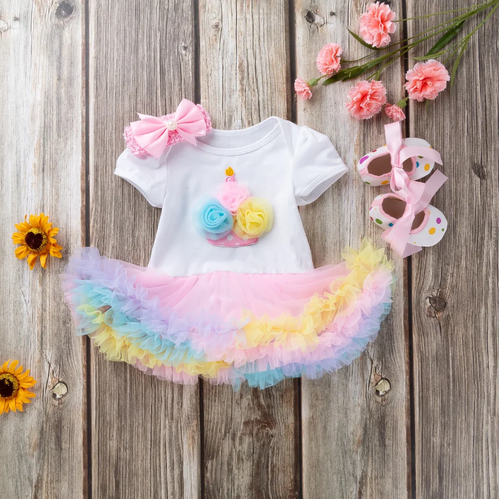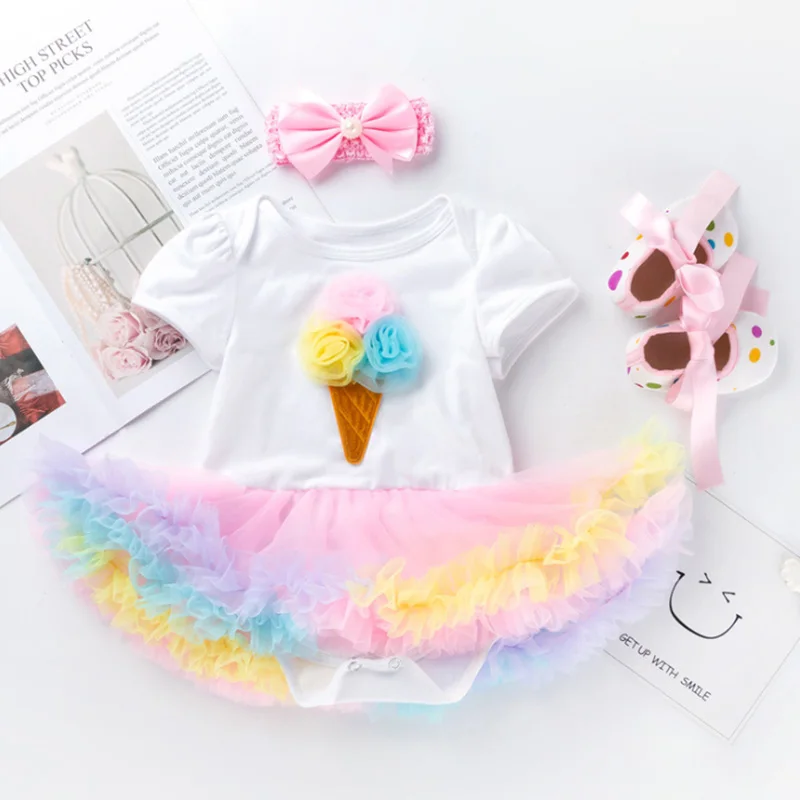 Платье на день рождения для девочек 1 год, наряд на первый день рождения, праздничные платья для девочек, платье-пачка для маленьких девочек, платье с мороженым, 3 шт.компл., повязка на голову