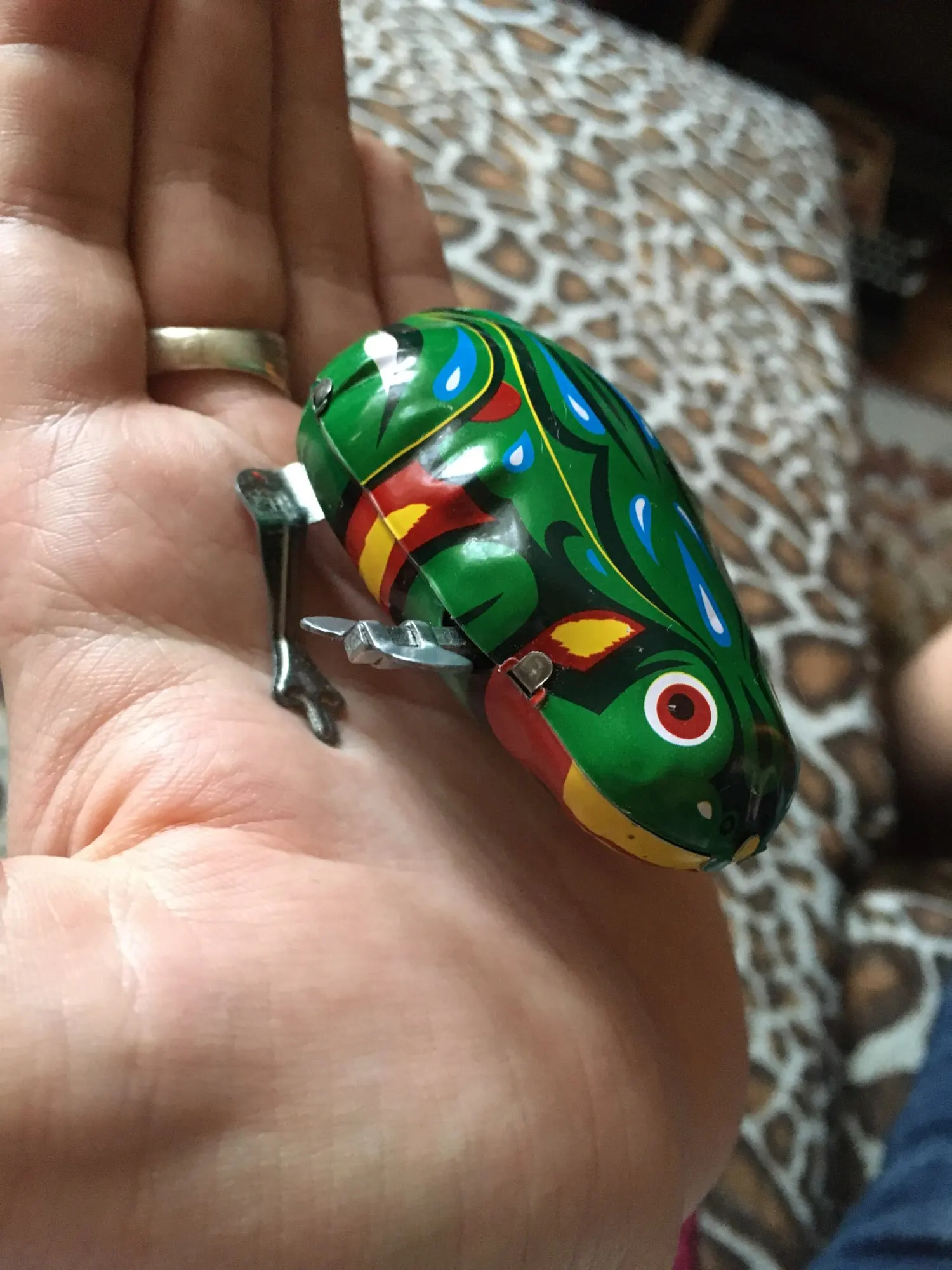 Я таких уже заказывала, так что знала о том, как они выглядят. Игрушки не долговечные, не особо аккуратная жестянка, но у нас прокатывает) не понравилось то, что заедает завод, и заводить тяжело, и может не прыгать, пока на спинку не нажмёшь. В общем, такое себе... Чисто понастальгировать о детстве и показать детям. Не берите малышам, которые тянут в рот, могут пораниться