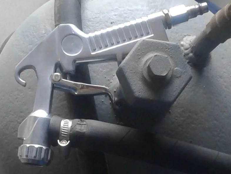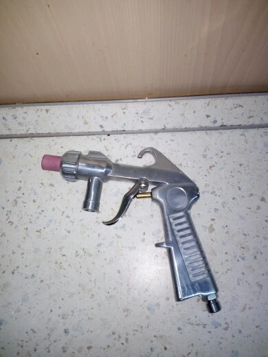 у меня есть пескоструй из пропанового балона, сопло сделано из свечи. Так вот хочу сказать что данный пистолет работает почти также, плюс только в том что более мобильней, набрал ведро сухого песка и работай. Компрессор 70л 10атм, включается после 10 сек работы, песок летит где-то до 5 атм давления. нужен мощный компрессор с большим ресивером.