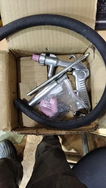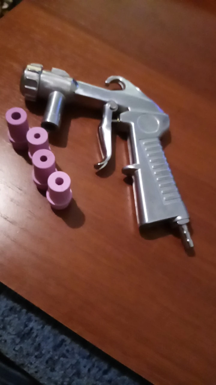 Пескоструйный пистолет продавец прислал достаточно быстро в соответствии с описанием. Отличный продавец, отличное качество его товара что является лучшей рекламой. Всем кто участвовал в честной сделке огромная благодарность. В работе проверить ещё не успел, окончательный вердикт в дополнительном отзыве, надеюсь что и пескоструить будет на отлично, тем более есть с чем сравнить.