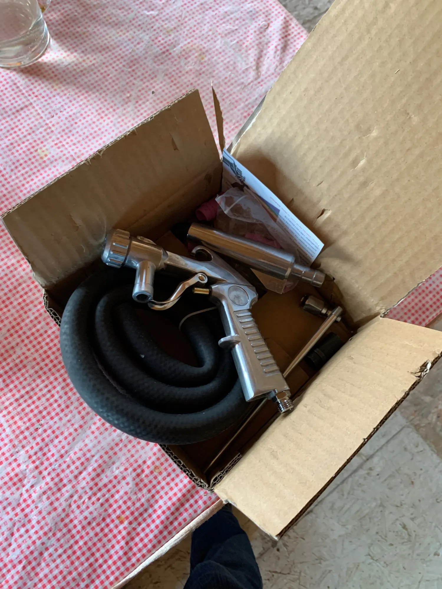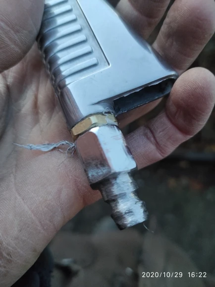 Доставка 23 дня. Упаковка хорошая. Пистолет травит! Не сильно, но всё же. Не обделан - все заусеницы пришлось затирать самому. Просил продавца быстросъём вместо штуцера - проигнорировал, хотя сначала "исером рассыпался" при переписке. Две насадки (5мм и 3,5мм) овальные и не заходят в пистолет. Буду как-то притирать. Минус звезда: продавец на картинке рисует как бы дополнительный штуцер - его НЕТ. Только штуцер на рукоятке.