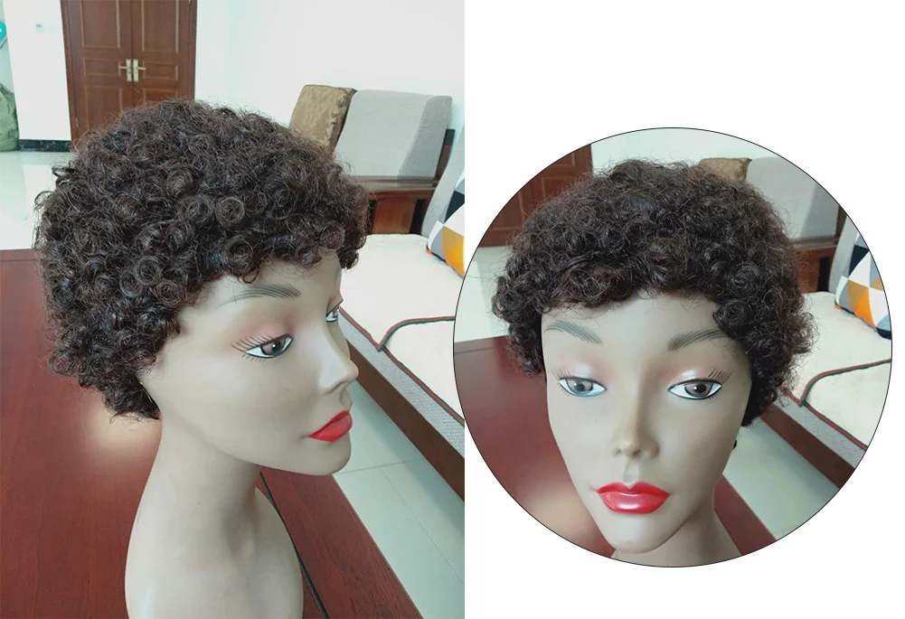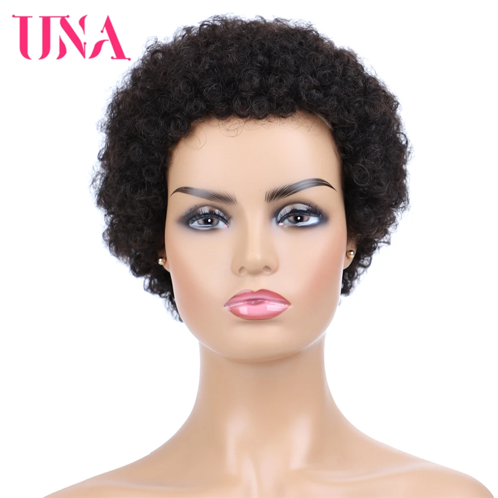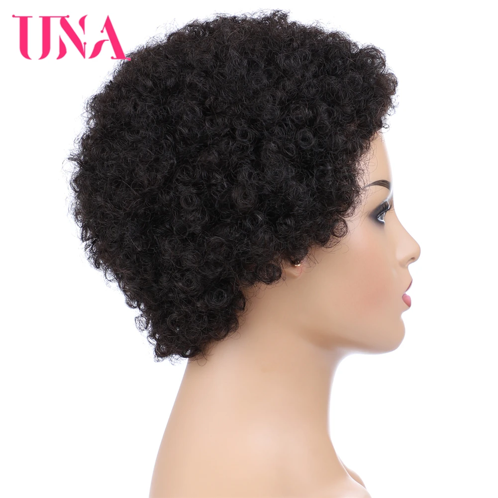 UNA короткие парики из человеческих волос, не Реми, человеческие волосы, 120% плотность, перуанские кудрявые человеческие волосы, афро парики для полной машины