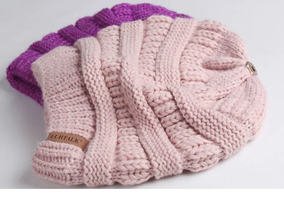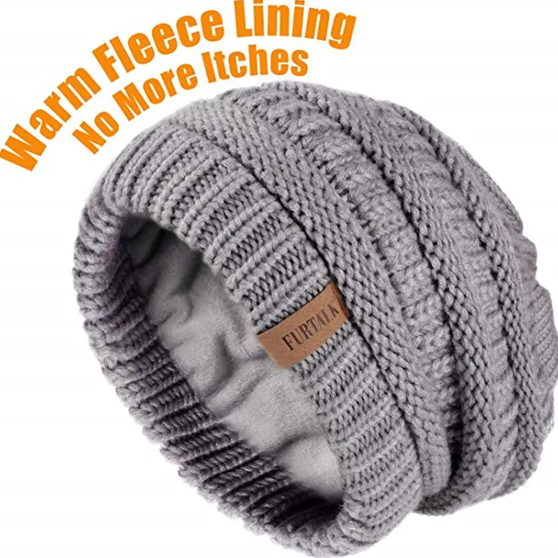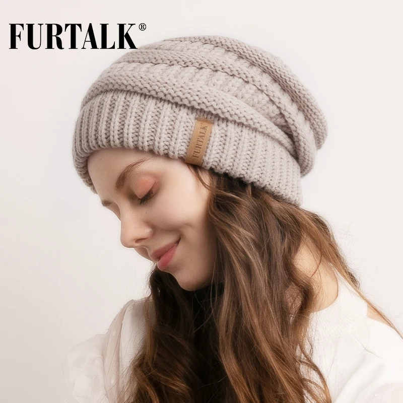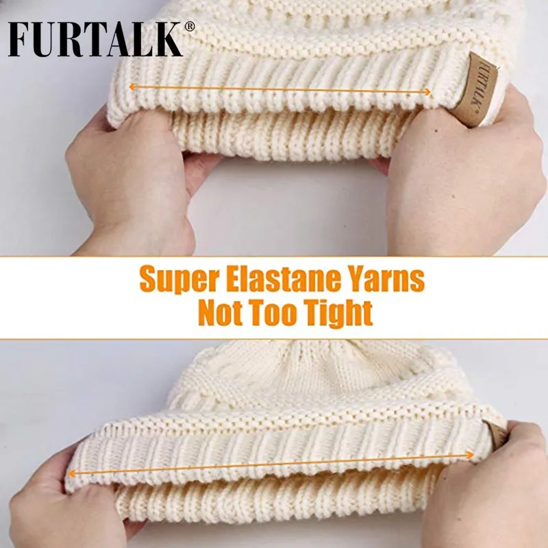 Шапка-бини FURTALK, красная, желтая, черная, серая, вязаная, с флисовой подкладкой, зимняя женская шапка