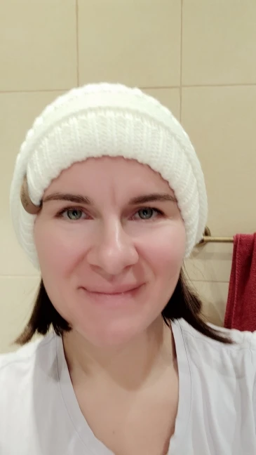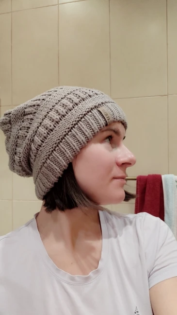 Отличная шапочка. Брала такую же без подкладки. Но эта сидит значительно лучше. На голове не крутится, и форму держит как надо. Мой размер 57 с половиной.
