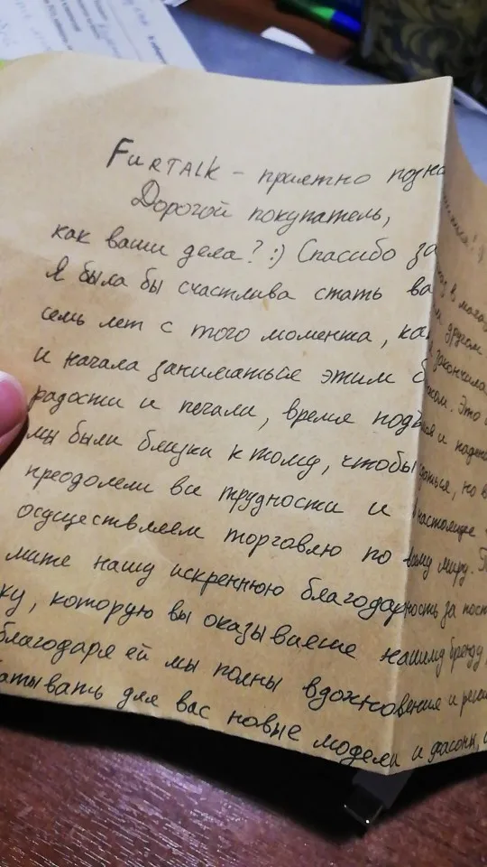 Заказывали шапку бабушке, это была ее первая вещь, купленная онлайн. Она покупкой довольна и очень умилилась рукописному письму, вложенному в посылку. Вы сделали настроение и ей, и всей семье :D Доставка очень быстрая, с Китая до Латвии дошло за 9 дней.