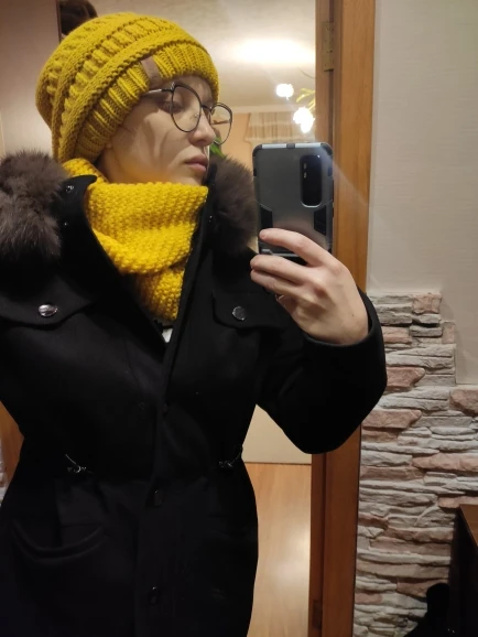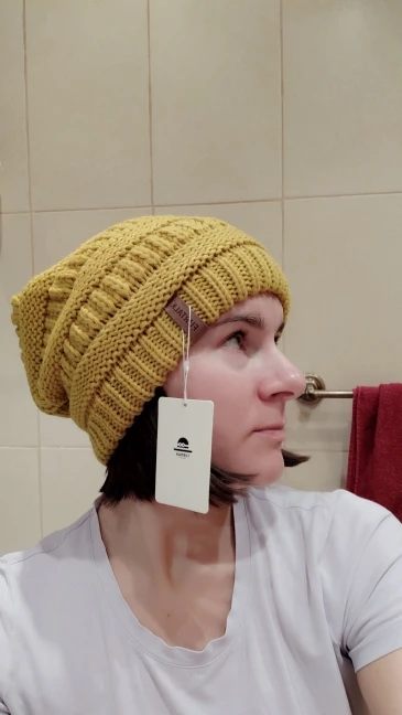 Мне не к лицу, но шапка классная. Глубокая, на ощупь приятная, и в -25 без ветра я в ней не замёрзла, капюшон не понадобился. Спасибо продавцу!