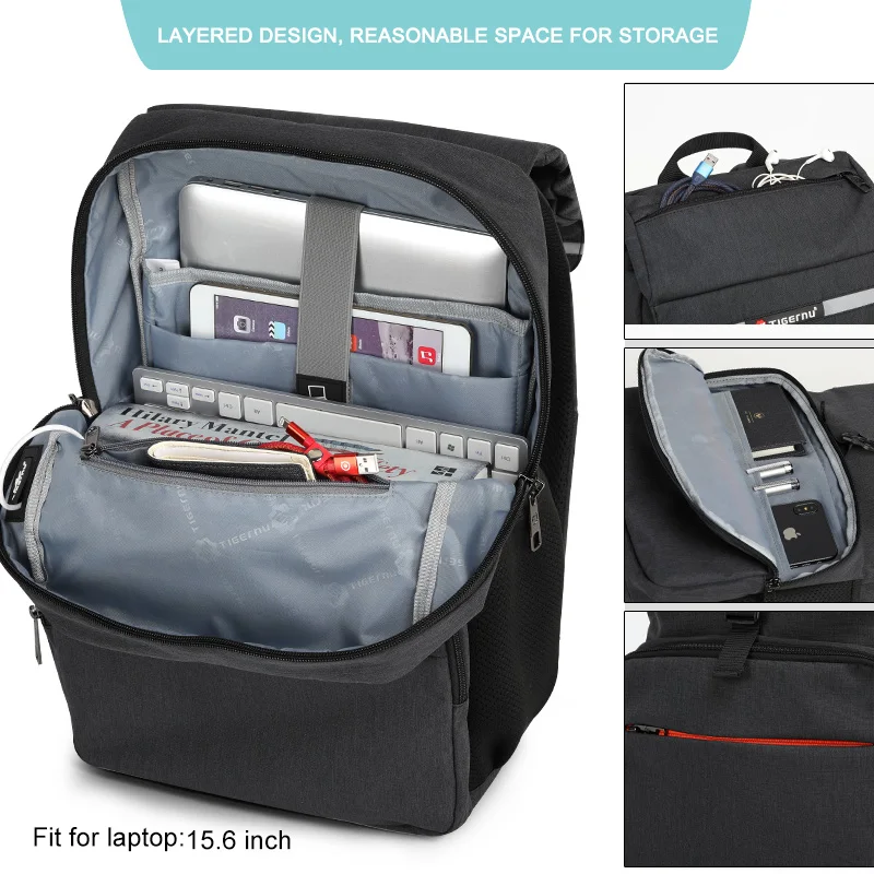 Tigernu, новинка, светильник для отдыха, вес 15,6 ", рюкзак для ноутбука, мужской, Противоугонный, на молнии, светоотражающий, USB, зарядка, дизайн, водонепроницаемый, школьные сумки