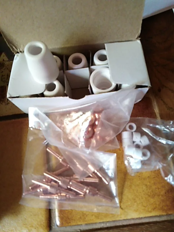 40 шт Воздушный плазменный резак аксессуары набор керамических насадок, вихревых колец, насадок и электродов подходит для PT-31 LG-40 фонарь CUT-40 50.Особенности:Эти расходные материалы подходят для PT-31 LG-40 фонарь CUT-40 50.С хорошей производительностью сварки.Прост в использовании.Обеспечивает высокую прочность и долговечность.Изготовлен из керамики и металла.Характеристики:Материал: металл + керамикаЦвет: розовый золотой + белыйПодходит для: PT-31 LG-40 фонарь CUT-40 50Длина керамического сопла: 30 мм/1,18 дюймаКольцевой Вихрь Длина: 5 мм/0,2 дюймаСопло Размеры: 15*11 мм/0,59 * 0.43inЭлектрод Размеры: 39*3,5 мм/1,54 * 0.14inПосылка Вес: 275 г/9,7 унцийРазмер посылка: 150*100*50 мм/5,91*3,94 * 1.97inПосылка:10 * керамические насадки10 * вихревые кольца10 * насадки10 * электроды