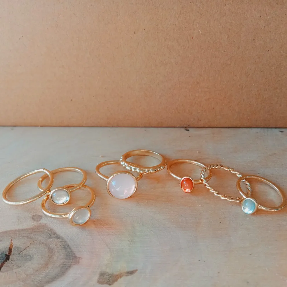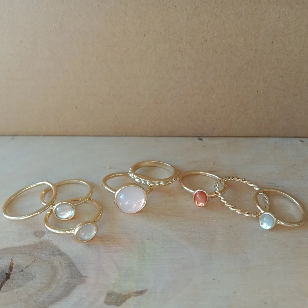 Хороший комплект, но обратите внимание, что все кольца одинакового размера (около 16,5 мм). На одной каменной поверхности был клей отпечатков пальцев, но я почистил его ацетоном