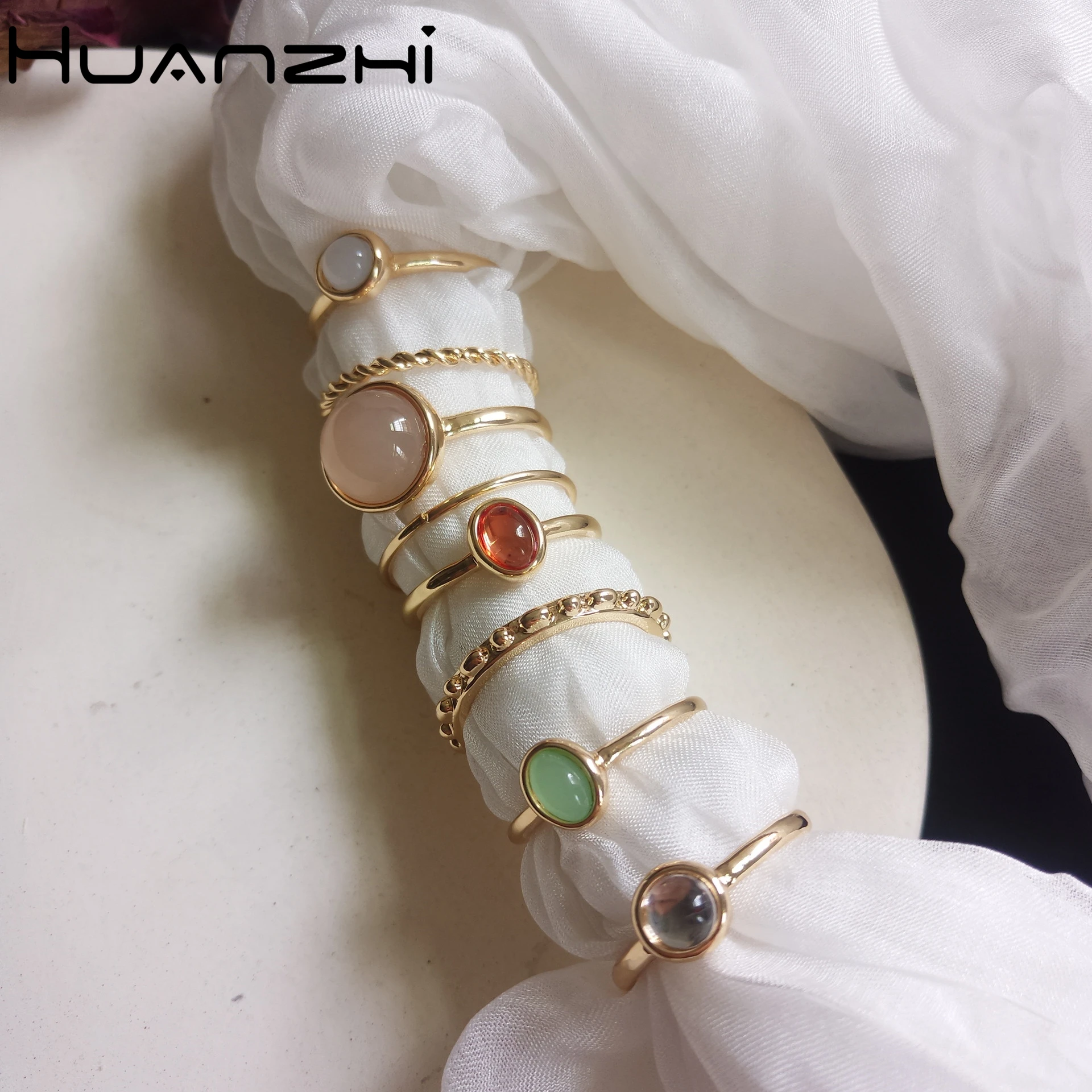 Кольца HUANZHI женские, летние, серебристые, с разноцветными камнями