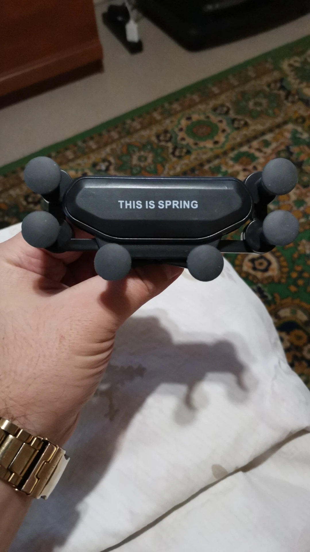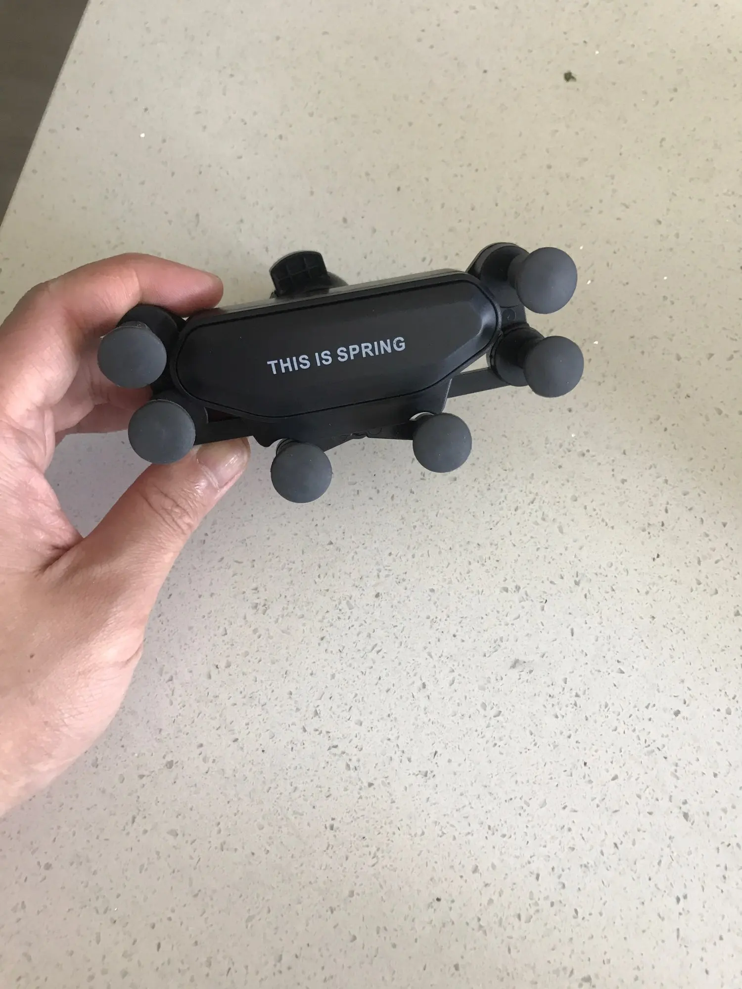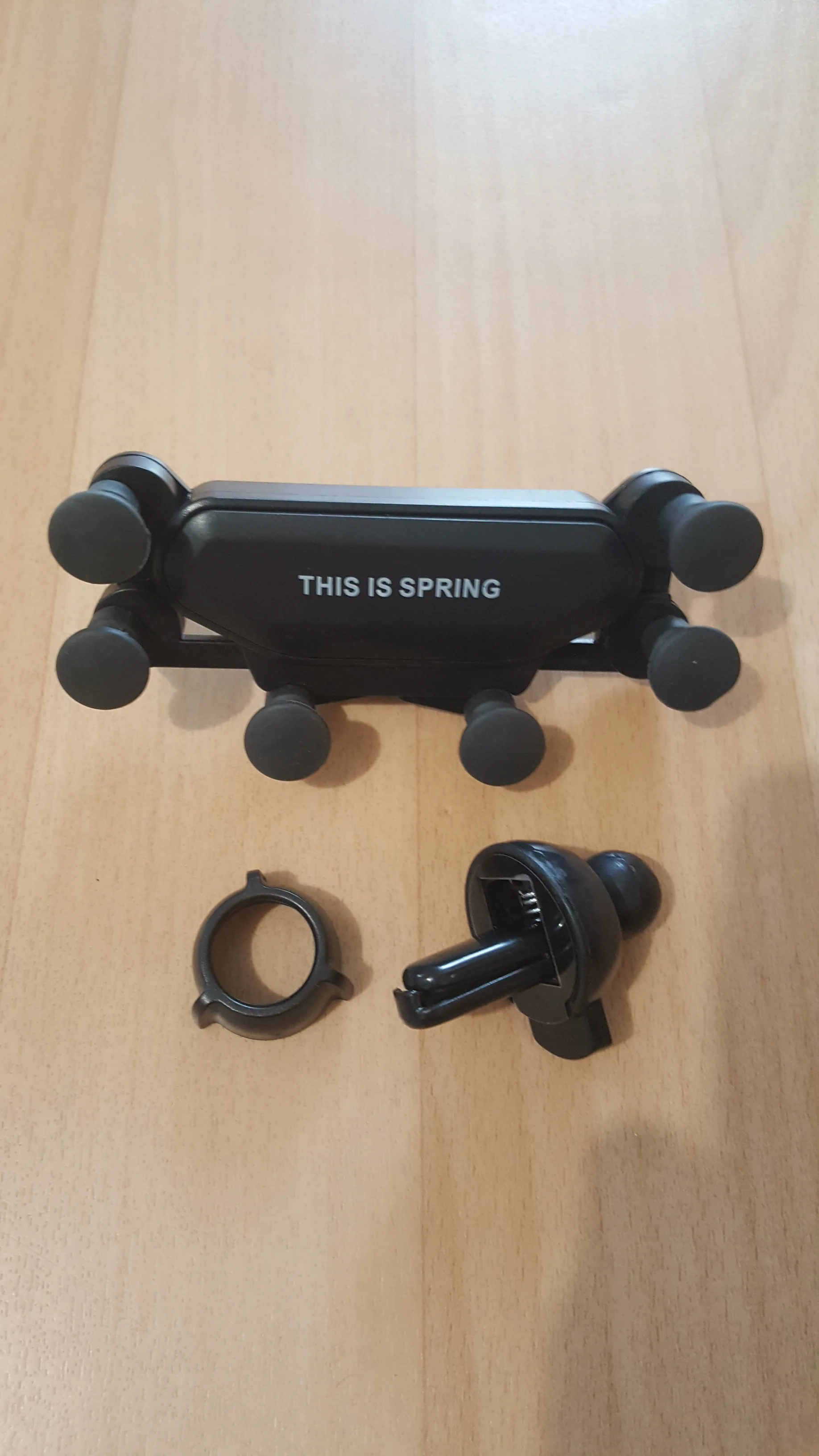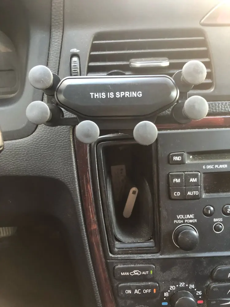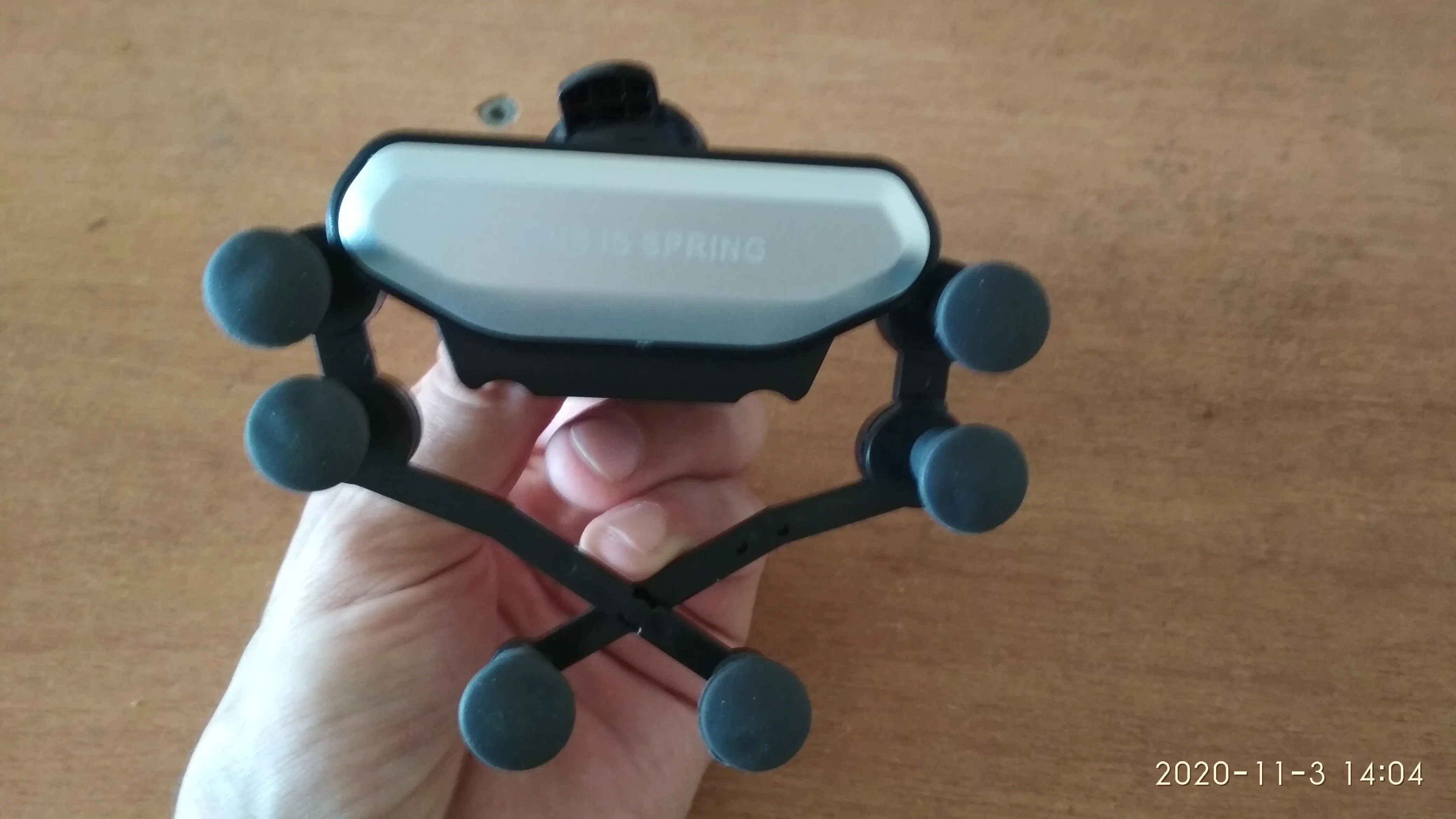 товар соответствует описанию. пружинка слабая но телефон держится хорошо за счёт 6 резиновых ножек-держателей. посмотрим насколько долговечное крепление на вентиляционные решетки автомобиля