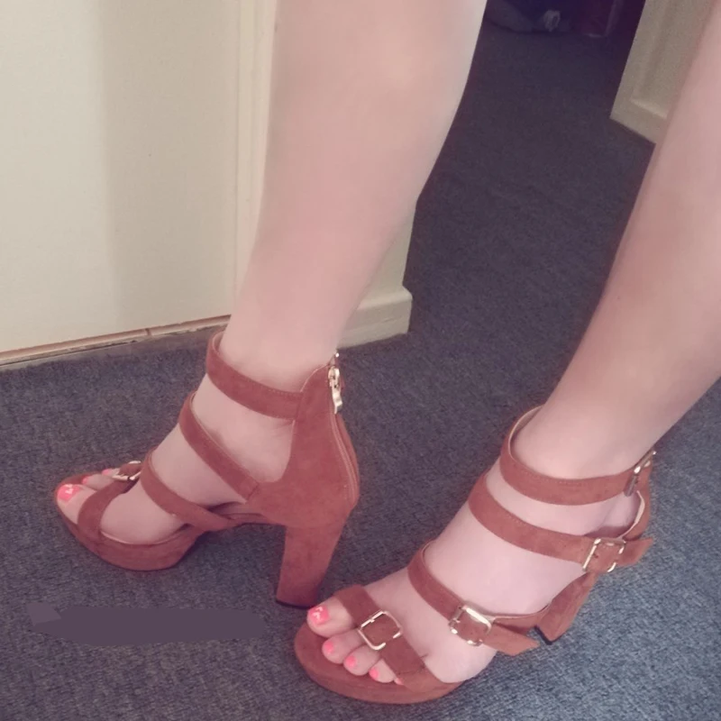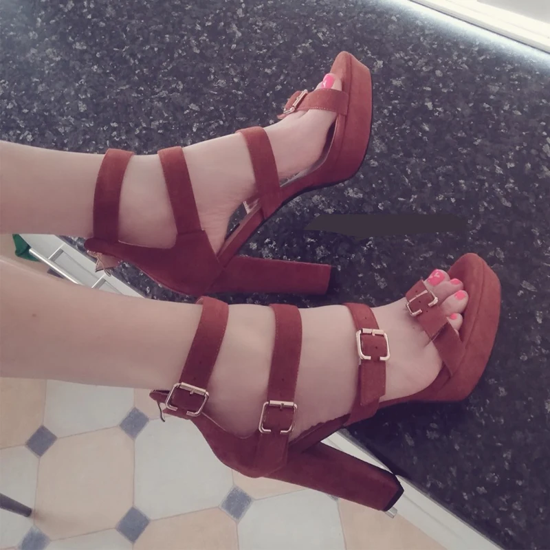 Босоножки из флока Onlymaker, на платформе, с открытым носком, на высоком массивном каблуке, с ремешком на щиколотке, для лета