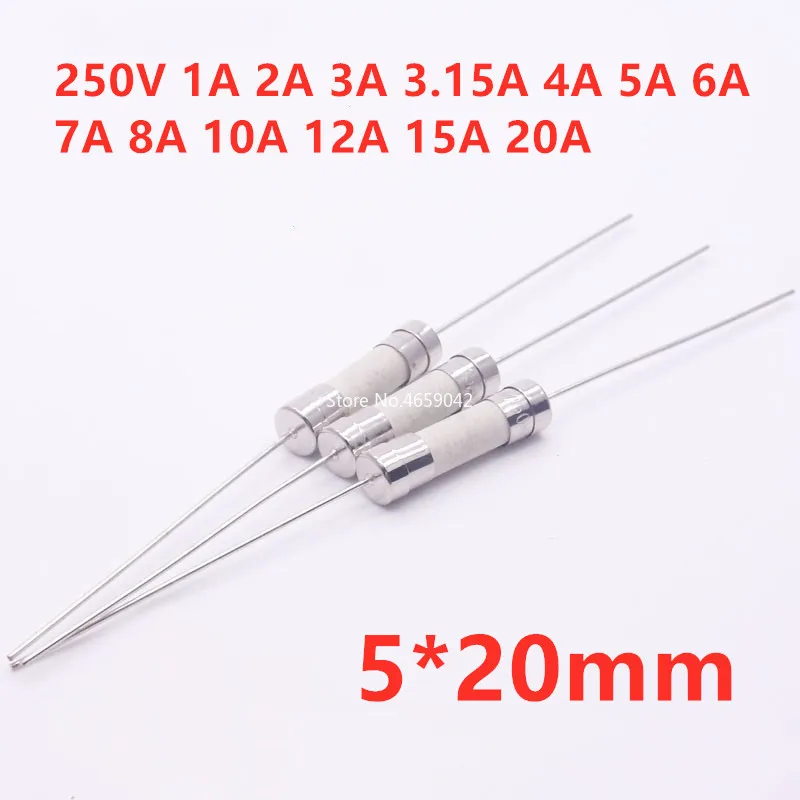 10 шт. 5*20 мм керамический предохранитель с штифтом 5x20 мм 250 в 1A 2A 3A 4A 5A 6A 7A 8A 10A 12A 15A 20A