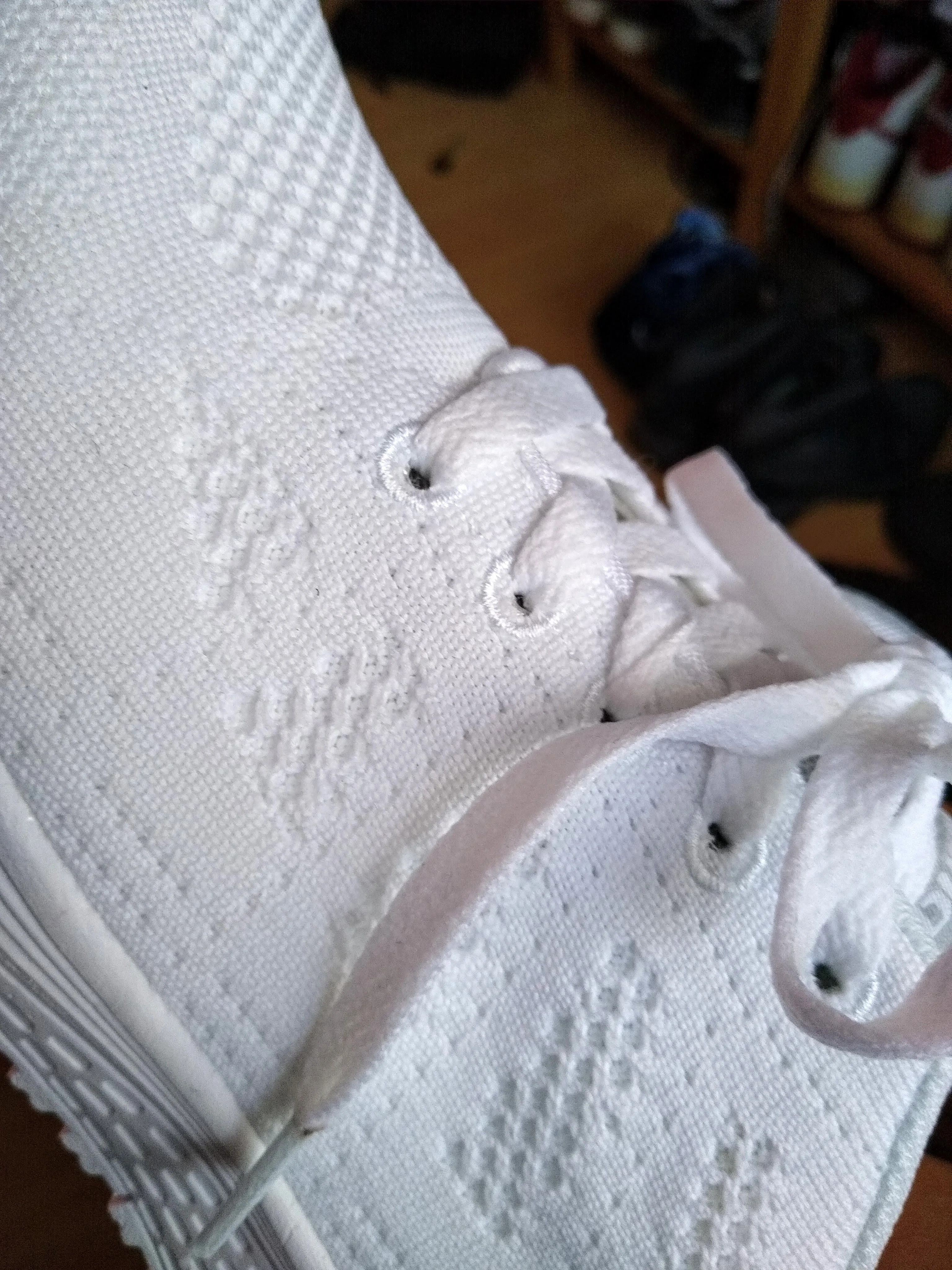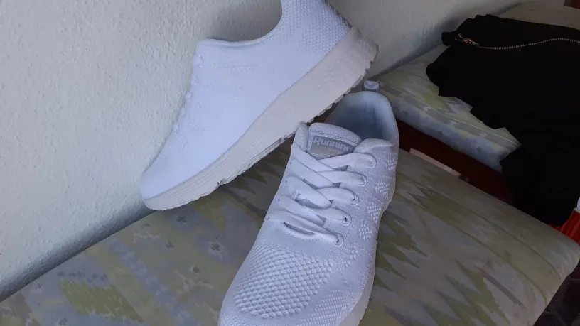 беру второй раз кроссы подобной модели, но в этот раз у другого продавца. в отличие от первых эти легче, но цвет ткани не такой белый как у подошвы что бросается в глаза. предыдущие служили верой и правдой 2 года, притом что ношу их на работу по 12 часов и стираю в машинке раз в неделю. заказ доехал до Самары за 10 дней-это самая быстрая доставка от Али, да и продавец отправил кроссы очень быстро. советую