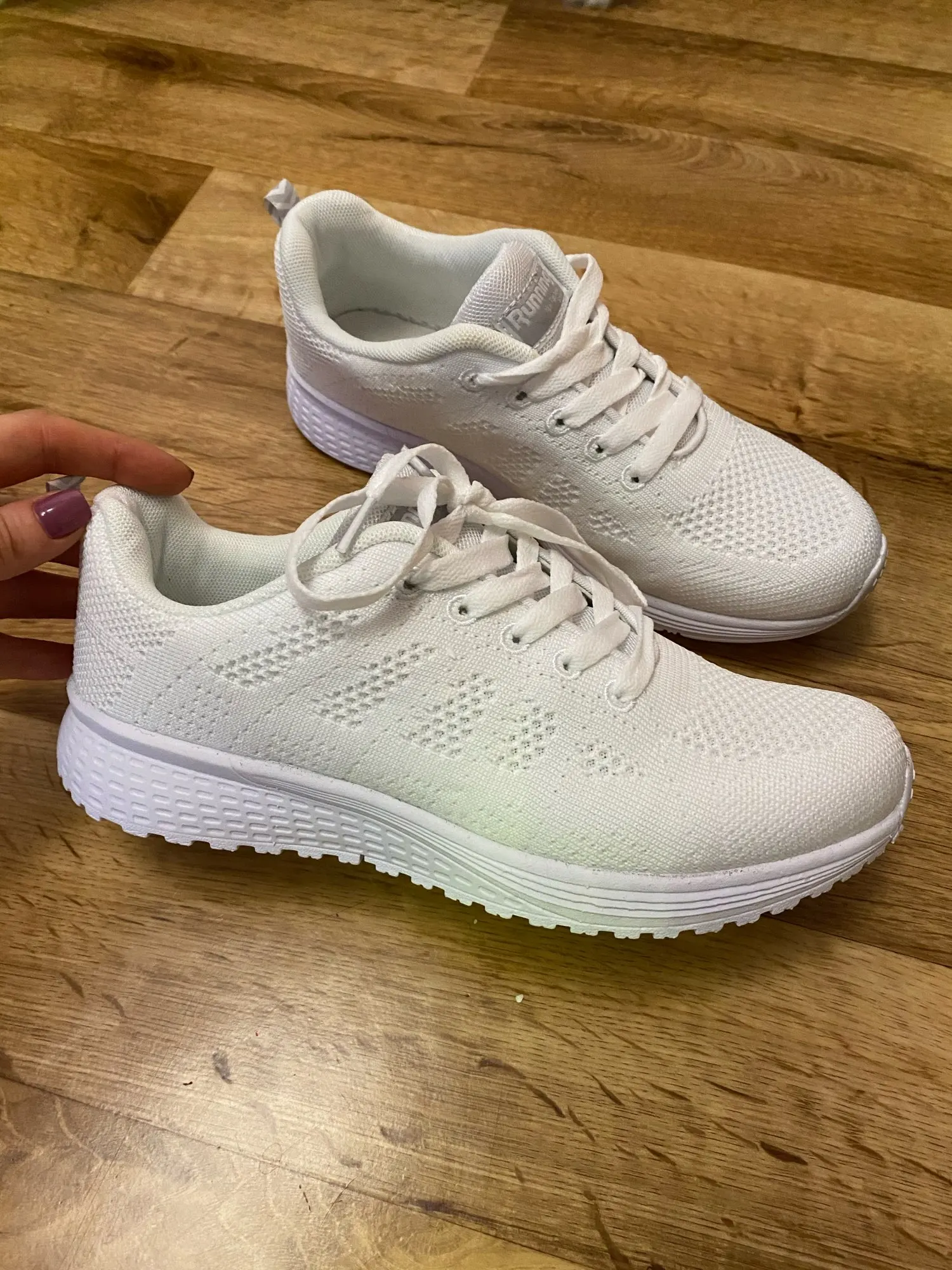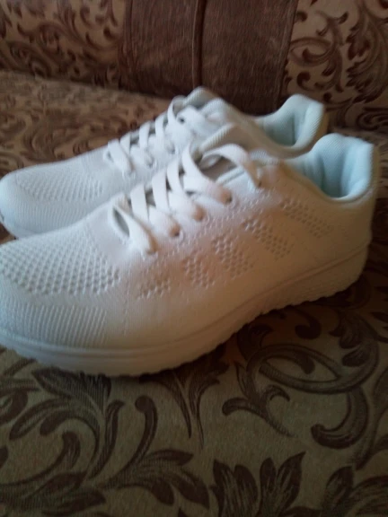 Кроссовки классные,белоснежные,легкие.Заказала 8 на наш 39, по ноге как раз.Продавец молодец,отправил заказ на следующий день,в пути посылка была 16 дней,отслеживалась на всем протяжении.Советую этот магазин.Продавцу спасибо.