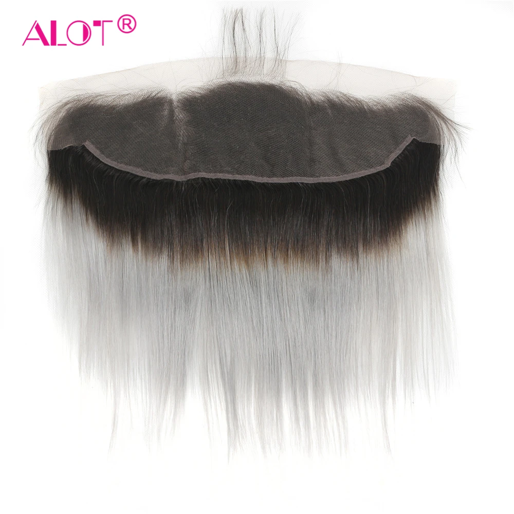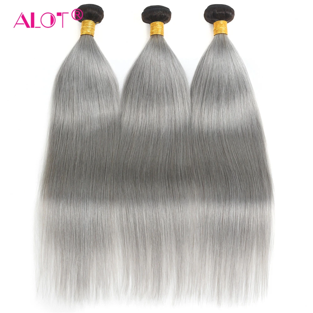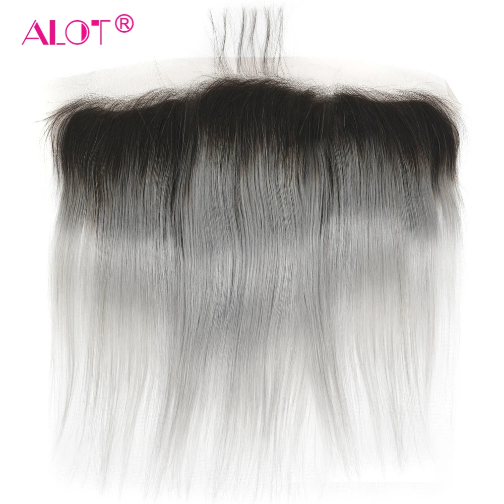 ALOT 1B серыйкрасныйсиний Омбре бразильские прямые человеческие волосы пучки с фронтальной remy волосы для наращивания с кружевной фронтальной застежкой