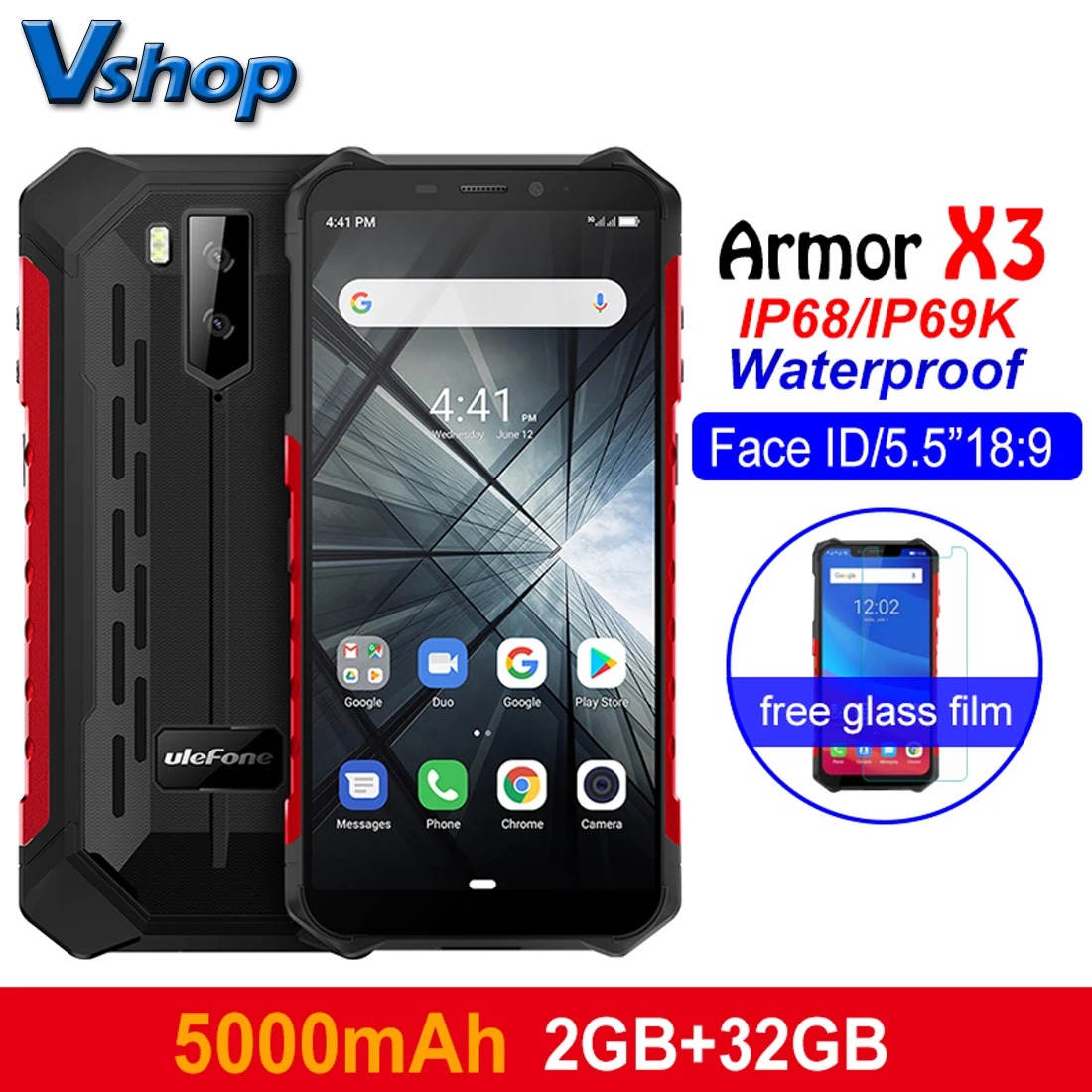 Смартфон Ulefone Armor X3, прочный, Android 9,0, IP68IP69K, 2 ГБ + 32 ГБ, 5,5 дюйма, HD + 8 Мп, 5000 мАч, распознавание лица, 3G
