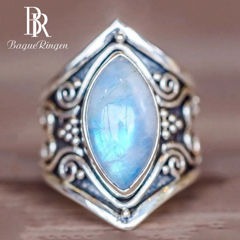 Кольцо с лунным камнем для мужчин и женщин, из серебра 925 пробы