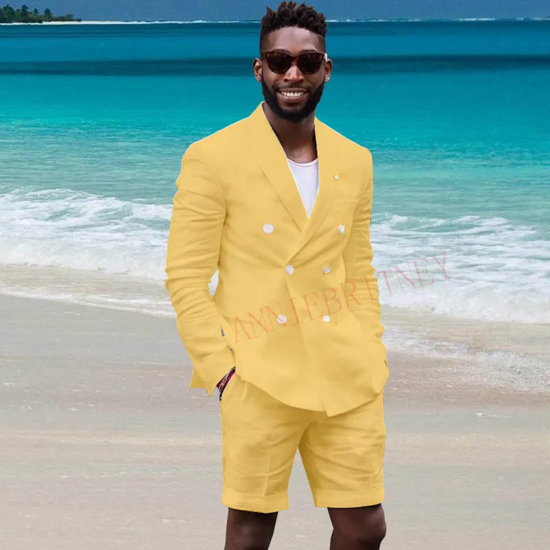 Мужской льняной костюм ANNIEBRITNEY, ярко-розовый приталенный пиджак и шорты, комплект из 2 предметов, лето 2020