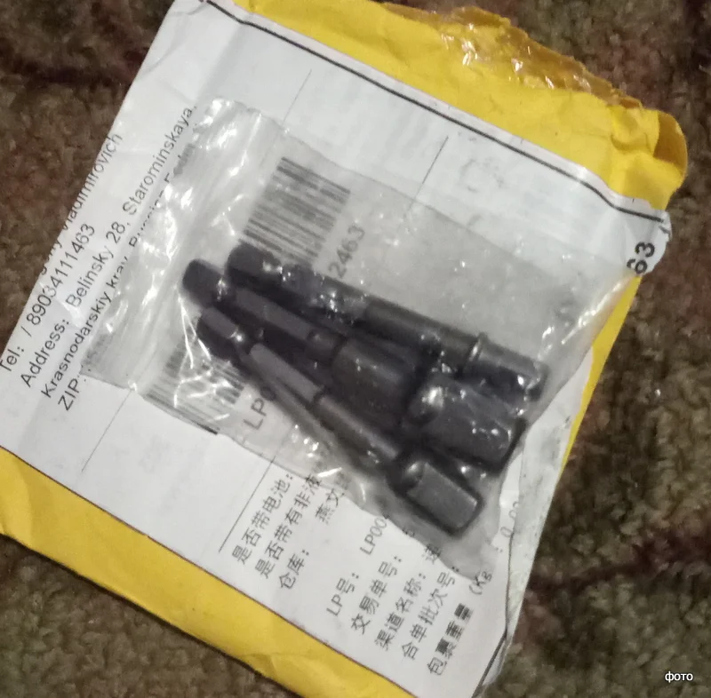 Трек не отслеживался. Доставка полтора месяца. На каждый из адаптеров головки под свой размер устанавливаются надёжно. В "шурике" тоже фиксируется надёжно. Закручивал винты по дереву с шестигранной головкой в брус, адаптеры выдержали. Ну и в машине кручу-верчу. Эти взял корешу в мастерскую. Приспособа нормальная, я доволен.