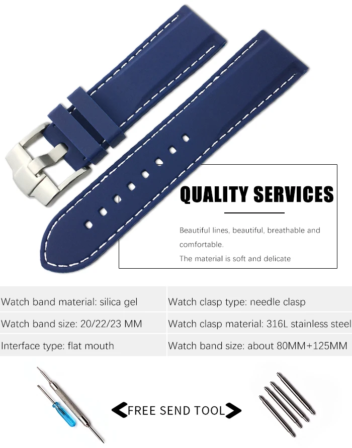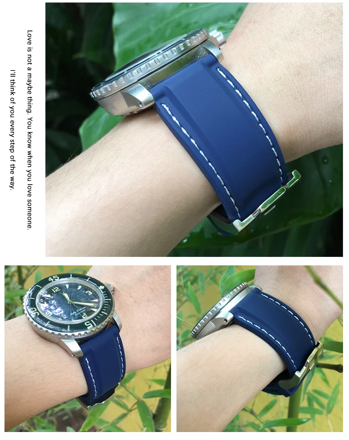 Резиновый силиконовый ремешок для часов 23 мм, черный, синий, водонепроницаемый ремешок с иглой и пряжкой, подходит для часов lancpain Fifty Fathoms