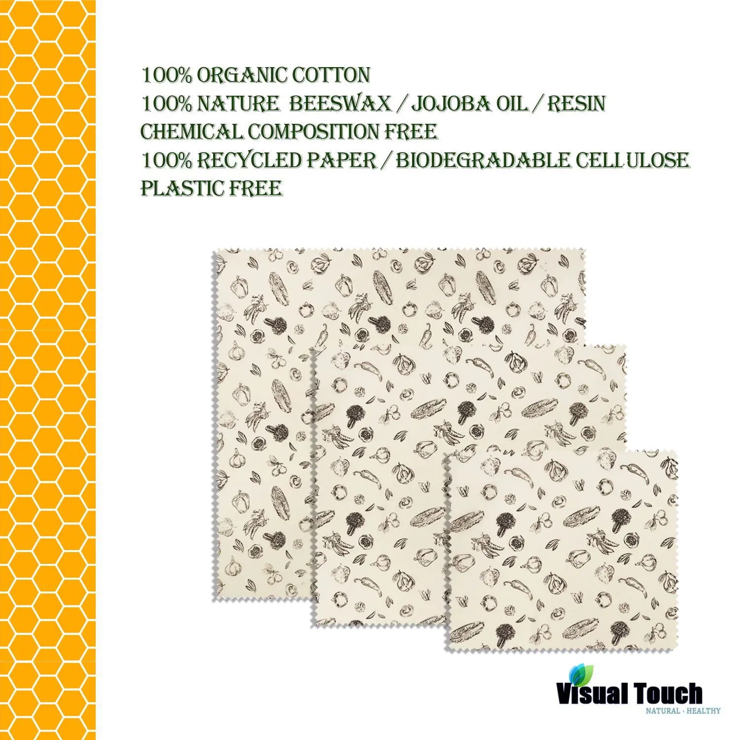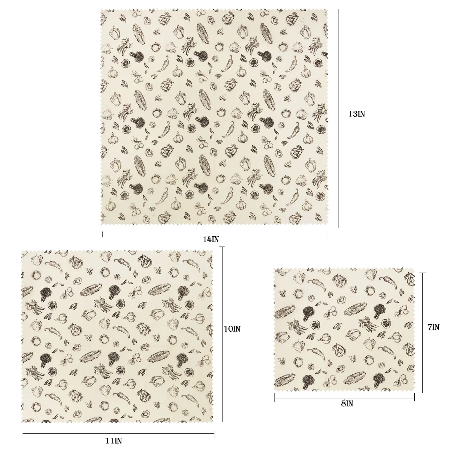 Обнаружение FDA,GOTS,FLGB.Три размера: костюм включает в себя три размера: большой, средний и маленький, подходит для различных продуктов питания. Способ использования: непосредственно свяжитесь и оберните ткань для упаковки пищевых продуктов из пчелиного воска с пищей и положите обернутую еду в холодильник.