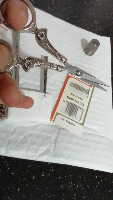 Очень хороший комплект по этой цене. Все изделия изготовлены из металлического сплава. Мой случай с иглой прибыл с проблемой качества (он запечатан и я не могу открыть его), но продавец договорился о возврате 2 $. Ножницы и шило острые и хорошо подходят к более толстой ткани.