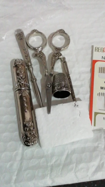 Изысканный комплект из 5 предметов; Очень красивый вид! Материал, из которого они сделаны, не тонкий, но тяжелый и прочный. Он имеет глубокие zilverglans (без царапин), и есть exalted фигура также трещотки, которые являются черными. Это добавляет глубину фигуры и увеличивает контрастность. Ножницы очень острые и легко двигаются. Naaldenkoker может быть легко закрыт и не выпадает снова. Awl довольно длинный и острый, и наперсток подходит под названием, но на среднем пальце. Получение было в течение 2 недель. Очень быстро. Он также был очень хорошо упакован, чтобы не допустить поломки или повреждения. Я рекомендую этот комплект и продавца.