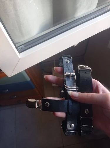 Классные штуки, хорошо держатся, жалко только, что зажим есть только с одной стороны. На бёдра 61см в обхвате налазят спокойно, в кожу не врезаются
