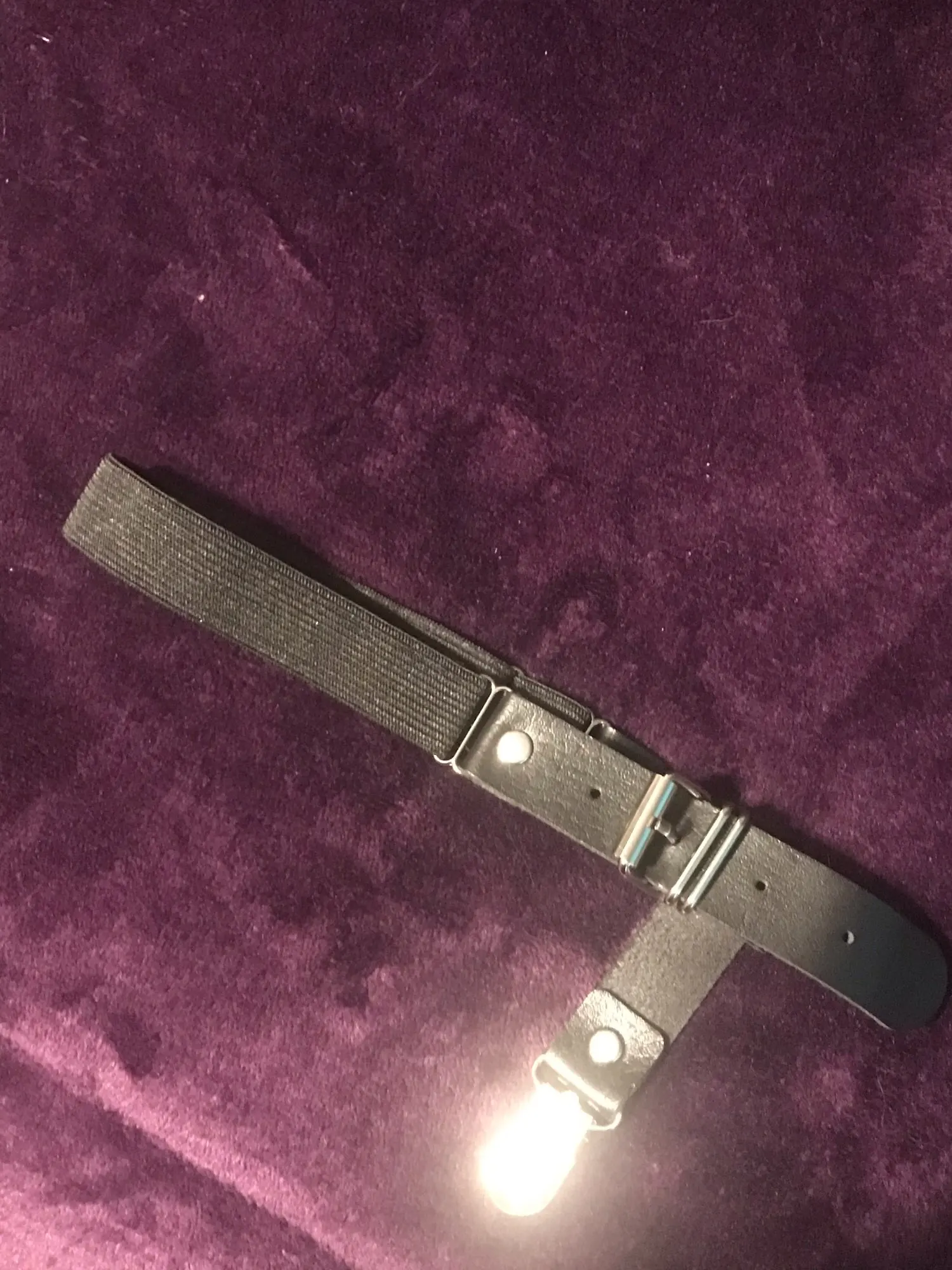 Точно такой же, как на фото, имеет эластичную головку для половины ремня, поэтому регулировка на разные размеры бедра очень простая и легкая.