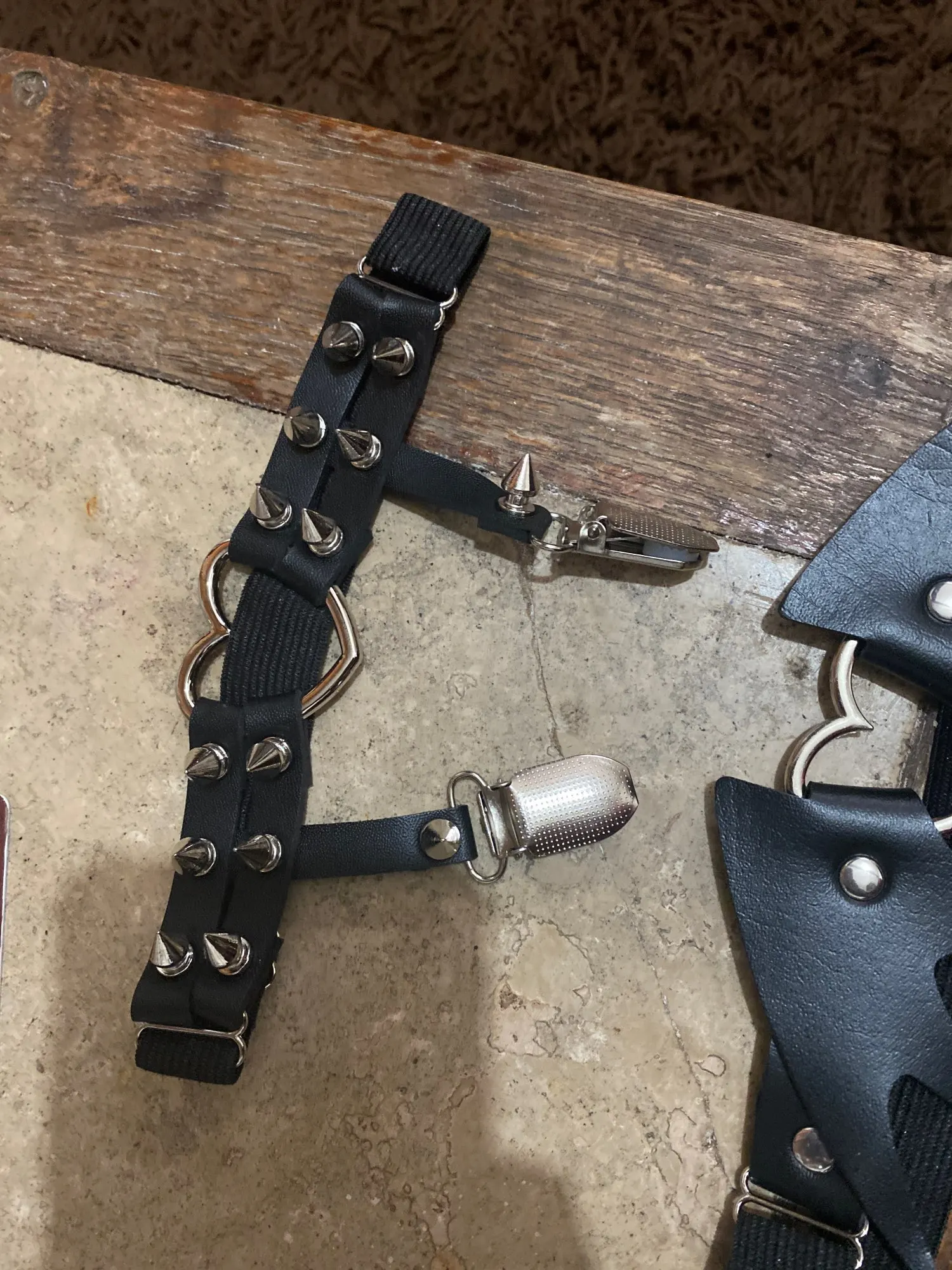 Пояс для чулок женский эластичный кожаный с заклепками, обвязка в стиле гот хараджуку