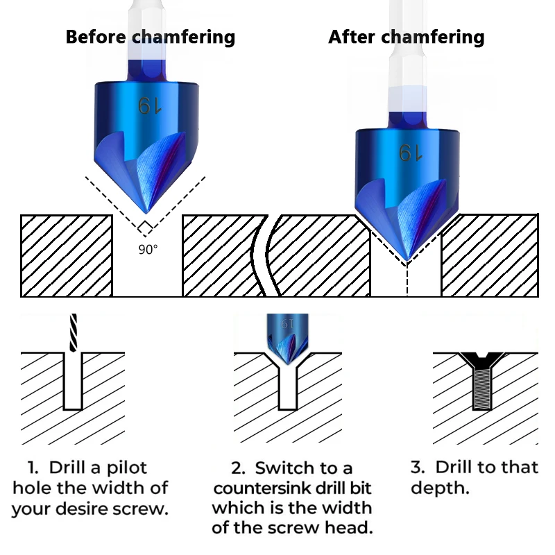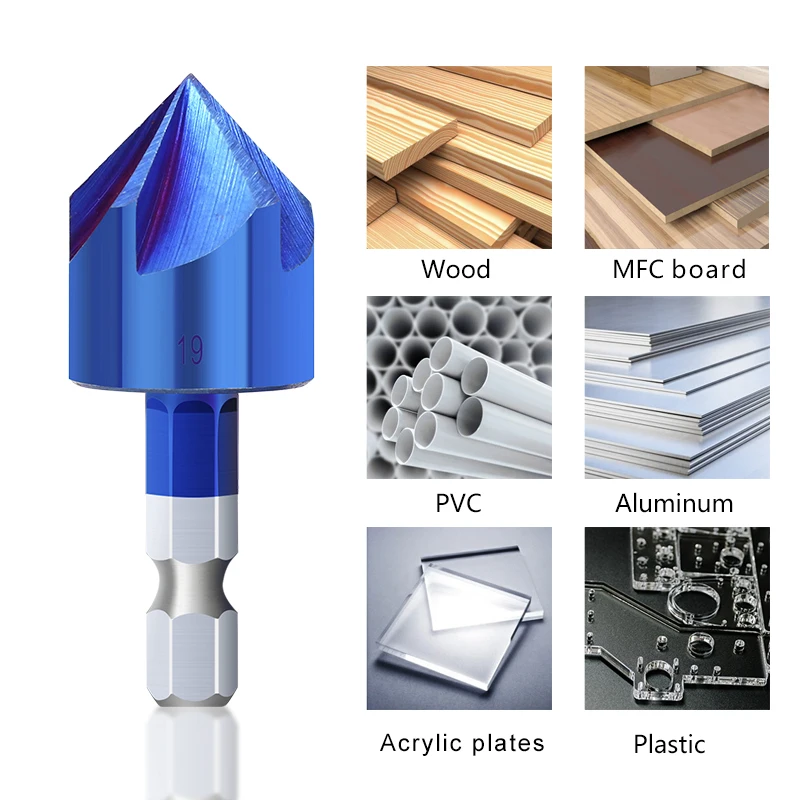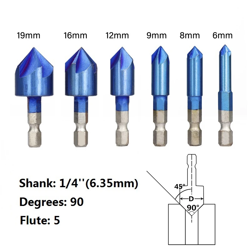 Набор сверл XCAN для снятия фаски с 5 канавками, 6 шт., 6-19 мм, 90 градусов, сверла из быстрорежущей стали с нано-синим покрытием