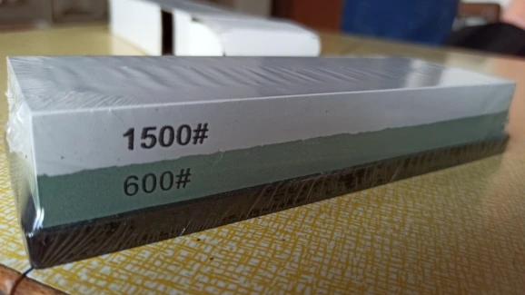 Камень отличный (600/1500) - в заводской упаковке, посылка отлично замотана. Камень ровный, равномерный, соответствует своей зернистости - уже испытал. Посылка долетела до Москвы за 10 дней (!) с доставкой в "Пятёрочку". Заказал у них ещё один камень :).