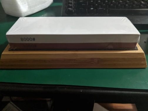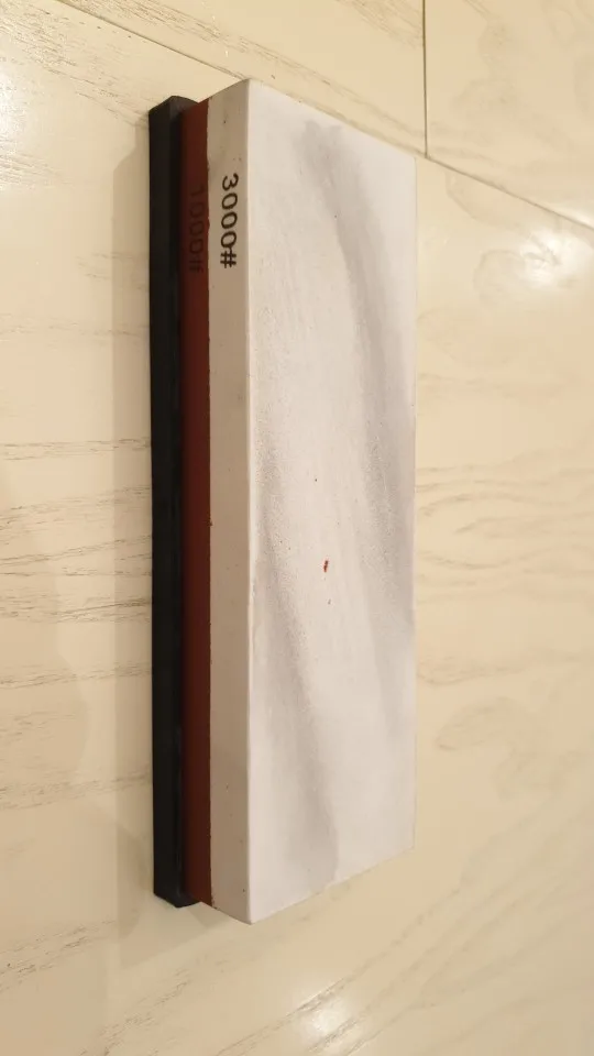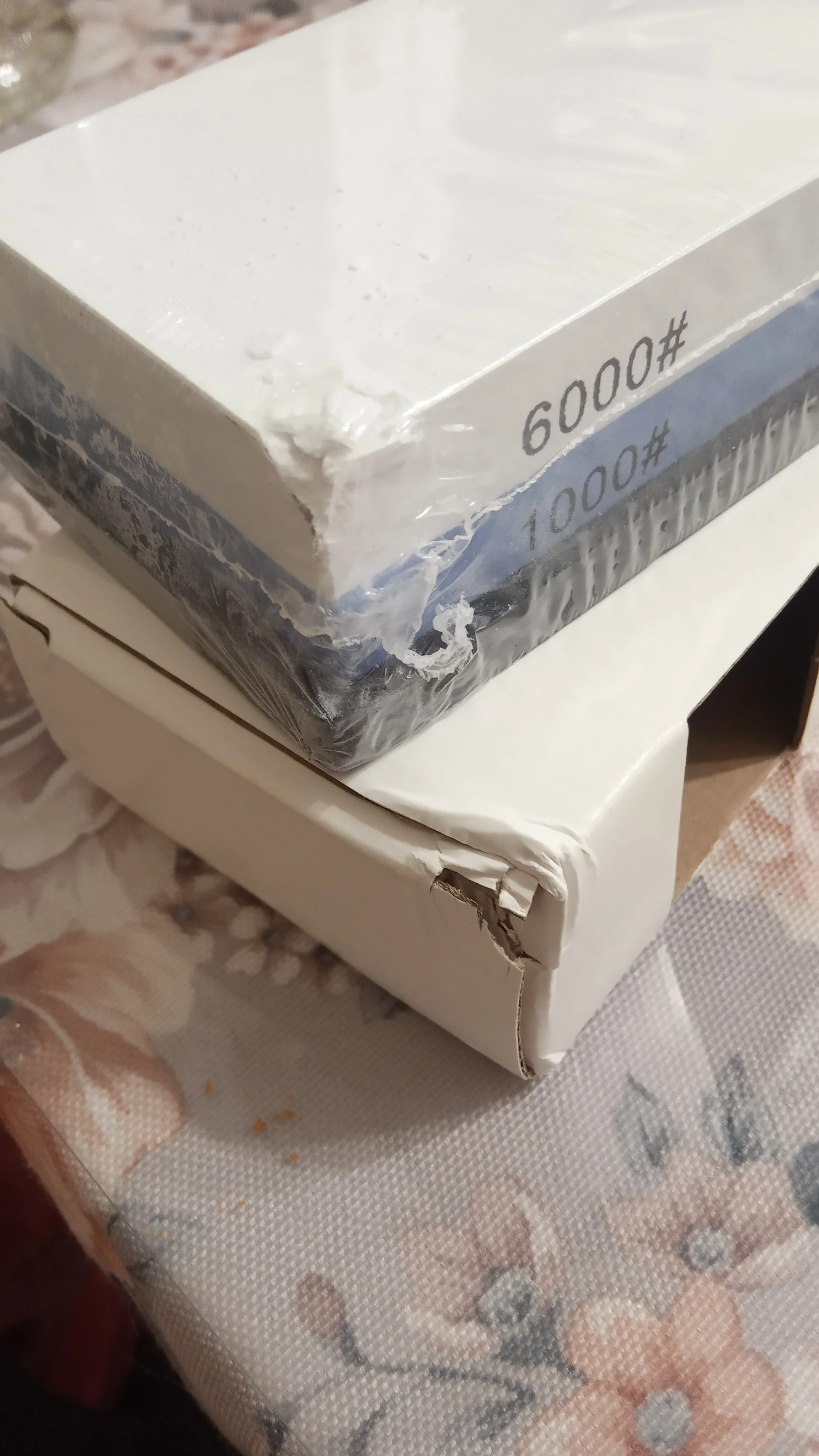товар хороший, нож можно заточить очень хорошо. упаковано все отлично, но на стороне где 8000 все равно было 3 скола, получены в процессе перевозки судя по осколкам тоже в пакете