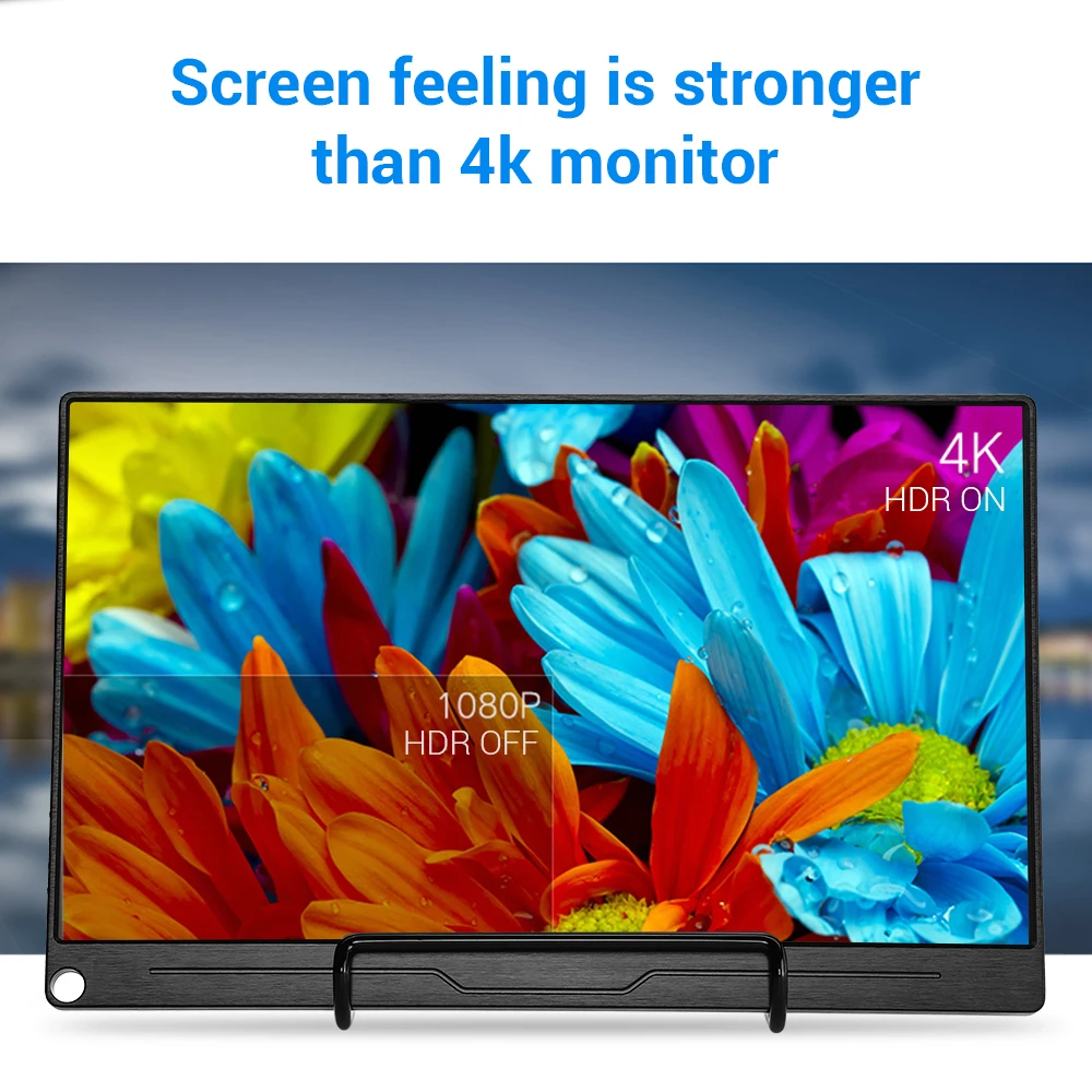 13,3 дюймов Тип-C 4K Портативный монитор Подробный Параметры: Экран Размер: 13,3 дюймов Материал корпуса: металл из алюминиевого сплава с ЧПУ Разрешение: 3840X2160 Яркость: 340cd / m Экран размерное соотношение: 16:9 Контраст: 1800:1 Широкоэкранный: Да Можно использовать для следующих областей: 1. Подэкран для ноутбука и смартфона, монитор может использоваться как второй экран для ноутбука, смартфона, мобильный телефон. 2. Работает как портативный игровой монитор, он совместим с XBOX ONE S,XBOX ONE,PS4,PS3,Xbox 360. 3. Потоковое воспроизведение медиа/ТВ-приставка монитор: он поддерживает Входное устройство Hdmi, он дает полное HD визуальное удовольствие.