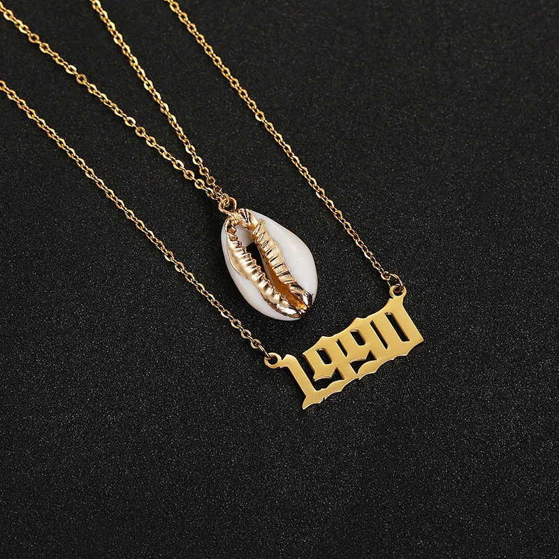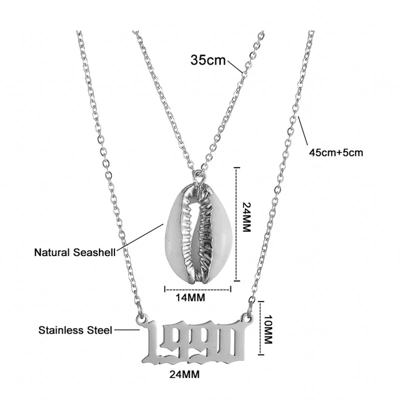 Ракушками Цепочки и ожерелья 2 многослойное год Номер оболочки кулон на день рождения, подарок на Новый год 1989 1990 1991 1992 1993 1994 1995 1996 1997 1998 1999