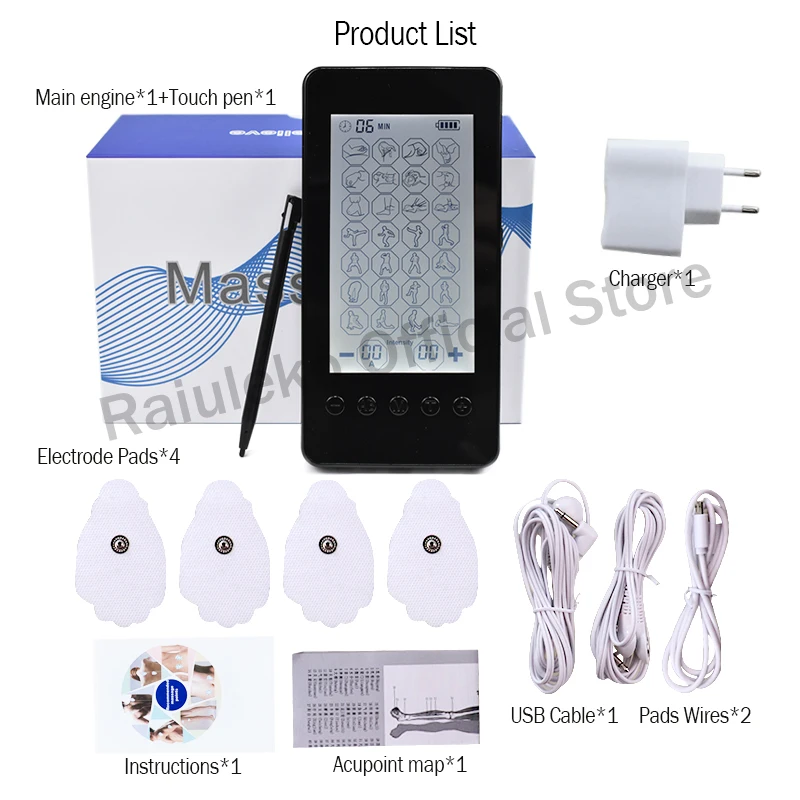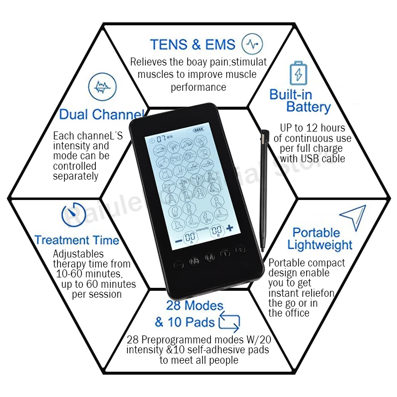 Мышечная терапия EMS, стимуляция 10, 28 режимов, электрический массаж, облегчение боли, Регулируемый легкий сенсорный экран, ЖК-дисплей