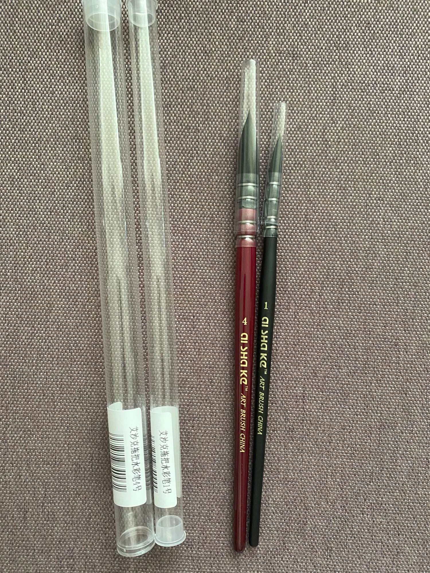 Посылка шла довольно долго, даже около месяца застряла между таможней и складом, отчего я чуть её не потеряла. Но посылка пришла, всё в хорошем состоянии. Каждая кисть пришла в отдельном довольно твёрдом пластиковом тубусе, сверху на ворсе с дополнительным колпачком очень порадовала такая прочная упаковка. Хорошая мягкая синтетика, очень податливая в использовании, упругая. Хорошо набирает и отдает воду. №5 и №4 довольно похожи, но мне как раз и нужны были такого размера кисти, угадала. Кисти прекрасно подходят для рисования акварелью, работать и держать кисть в руке очень удобно! Спасибо продавцу, обязательно закажу ещё!