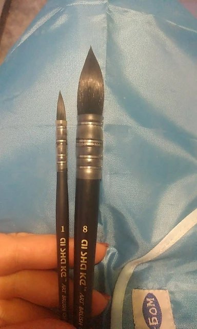 Кисточка шикарная!) заказала размер 2, она довольно крупная, но кончик тоненький) можно всю работу одной кистью и нарисовать) отправили в день заказа, пришла недели за 3 в Санкт-Петербург )вот как пример фото, все одной кистью, очень приятно работать, воду держит хорошо, очень довольна покупкой, с зарплаты закажу ещё)