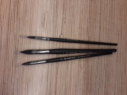Очень хорошие и качественные кисточки. Чистая классика - можно делать заливку как больших областей, так и прорисовывать мелкие детали и тонкие линии, кончик кисточки тоненький, это позволяет. Приехал за три недели в Украину новой почтой. Продавцу спасибо, хороших продаж.