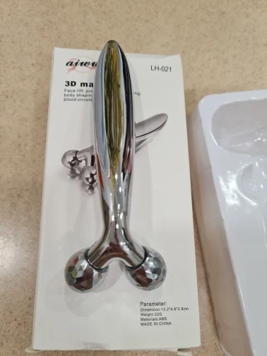 Массажер пришёл в помятой коробке, но не поврежден. Ручка пластиковая, ролики, возможно, с каким-то металлическим напылением, потому что холодные на ощупь. Все детали без брака. Пользовалась всего несколько раз, пока про эффект говорить рано. На за такую цену не жаль было взять попробовать.