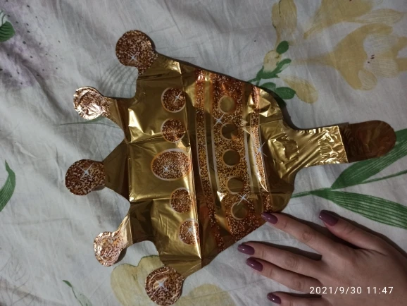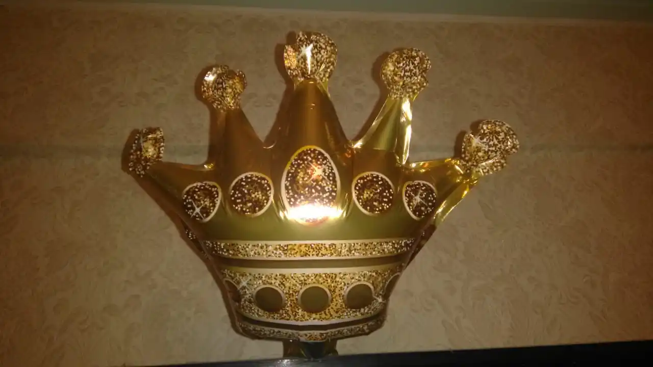 Спробувала її надути трубочкою і все вдалось. Корона така сама, як на світлині. Товар прийшов швидко, менше місяця був у дорозі.