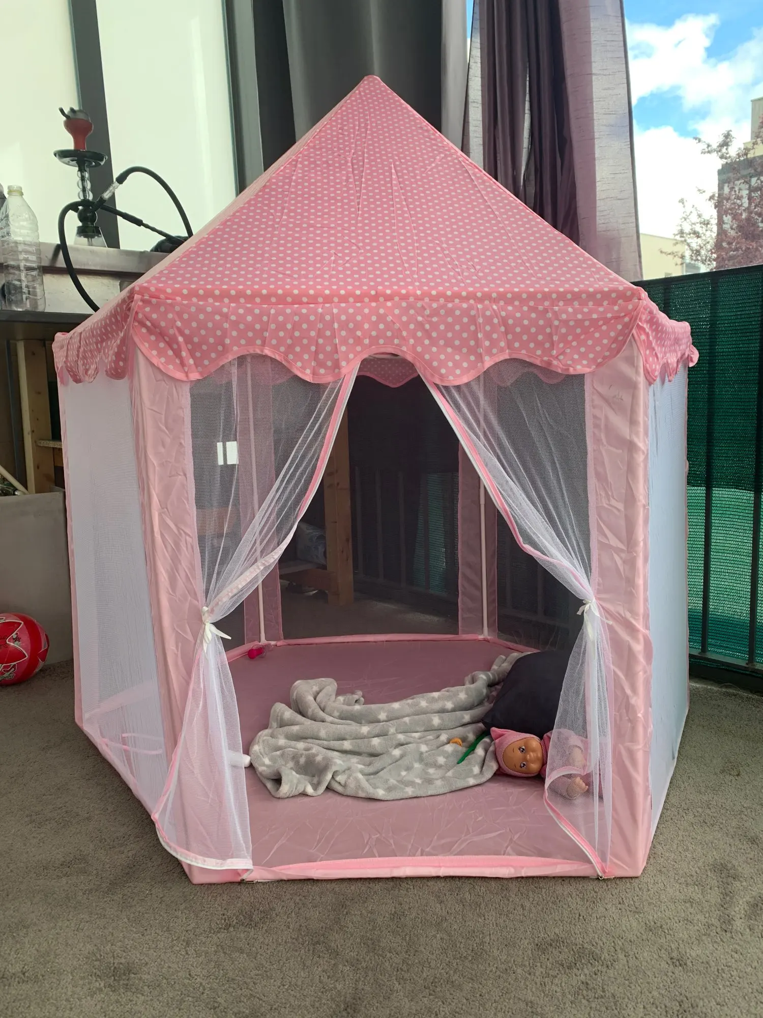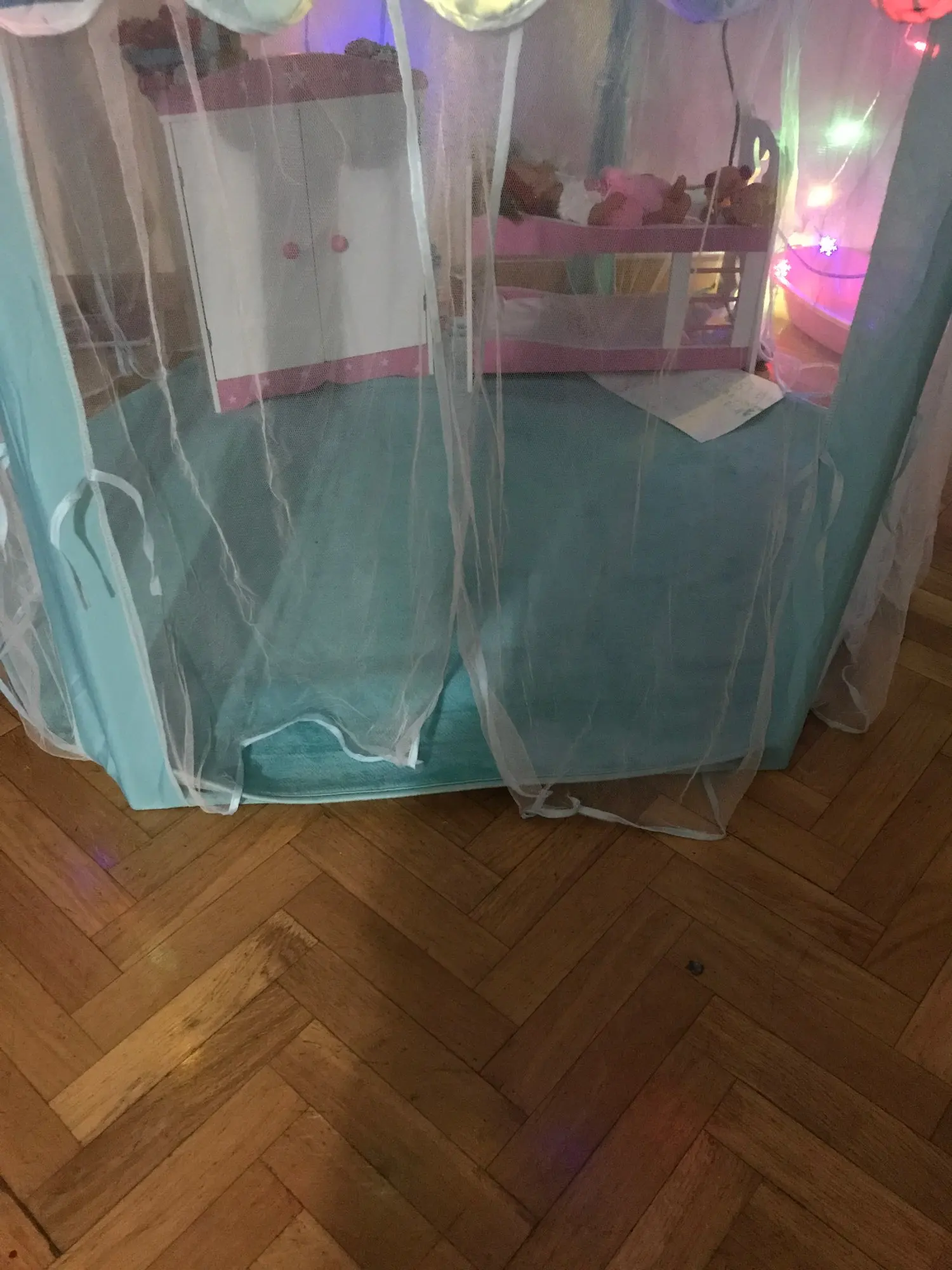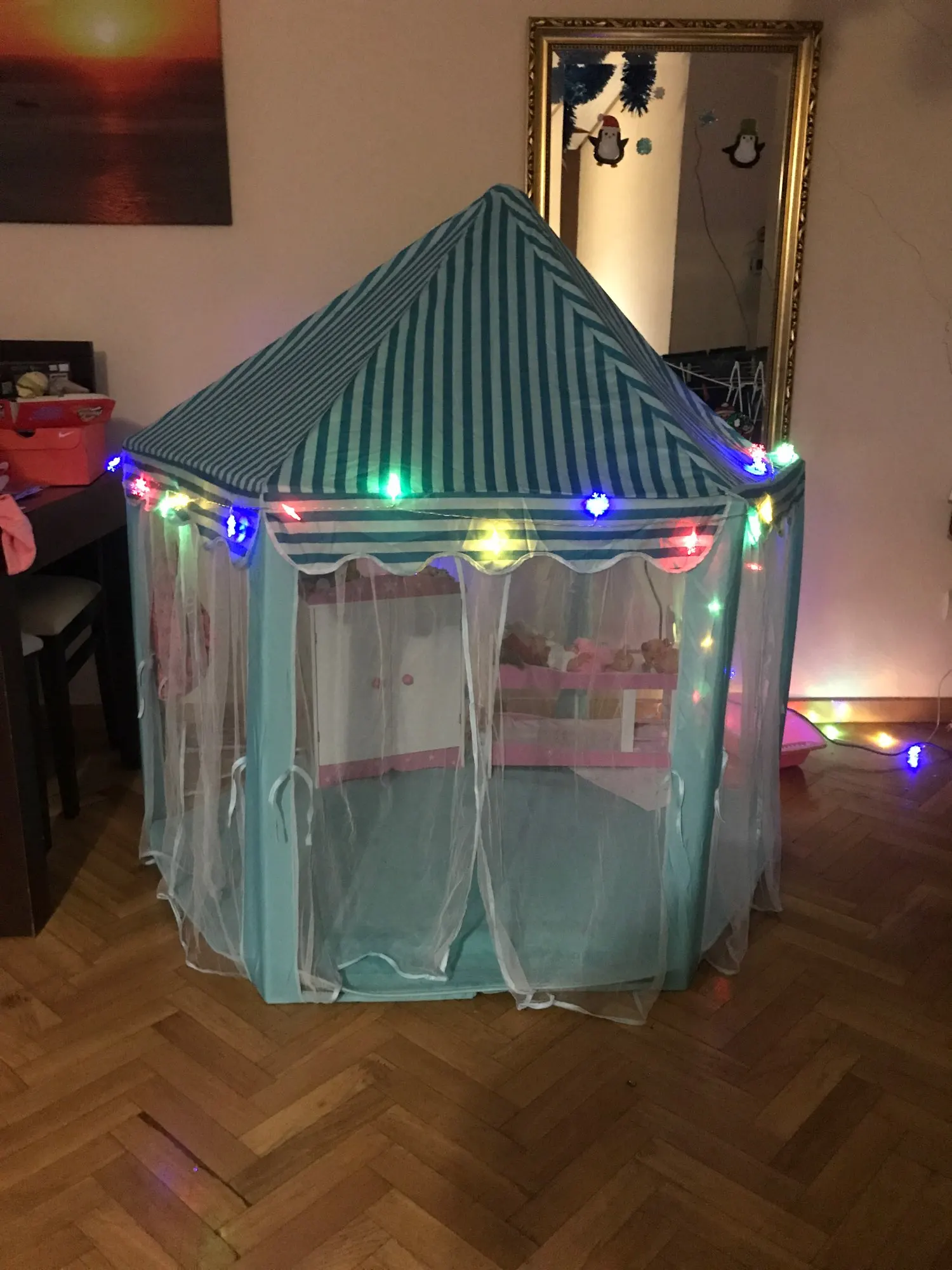 Заказ сделал 05.01.2021, пришла 18.01.2021г. (Ставропольский край). Продавец оперативно обработал заказ в праздничные дни и заказ прибыл в течении 13 дней - это отлично. Дочке детская палатка очень понравилась, она довольная. Каркас детской палатки состоит из полихлорвиниловых белых полых трубок, соединяющие между собой с помощью плассмасовых деталей и чехла в моём случае голубого цвета. Полик для палатки не заказывал. Трубки имеют не сильный химический запах. Проблемы возникли при сборке детской палатки. Сначала я собрал каркас, потом попытался чехол натянуть на собранный каркас детской палатки. Мучился долго и ничего не получилось. Пришлось собирать каркас внутри чехла детской палатки, было не удобно, собирали вдвоём. Один держит за макушку крыши чехла палатки, другой мастерит каркас внутри чехла детской палатки. Пришлось попотеть, думаю в следующий раз будет уже побыстрей. Прилагаемая инструкция по сборке детской палатки была на англизком языке и мне мягко говоря не помогла.