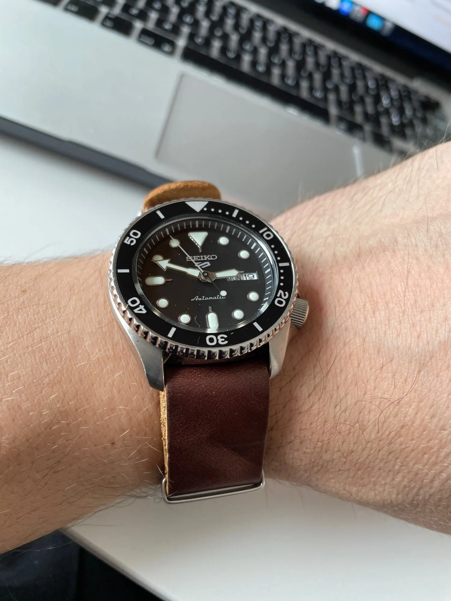 Кожа nato хорошая и просеяна и выглядит хорошо. Счастливый.