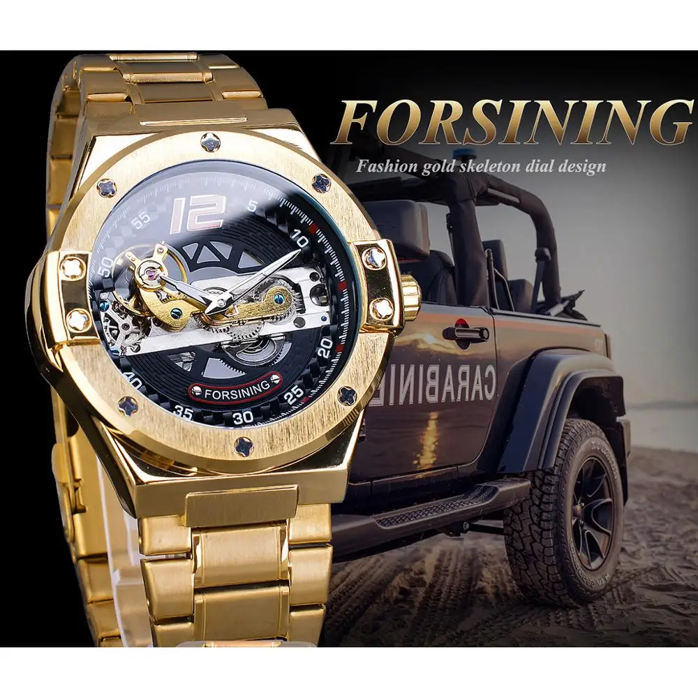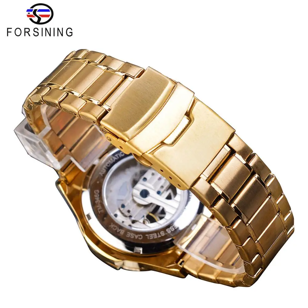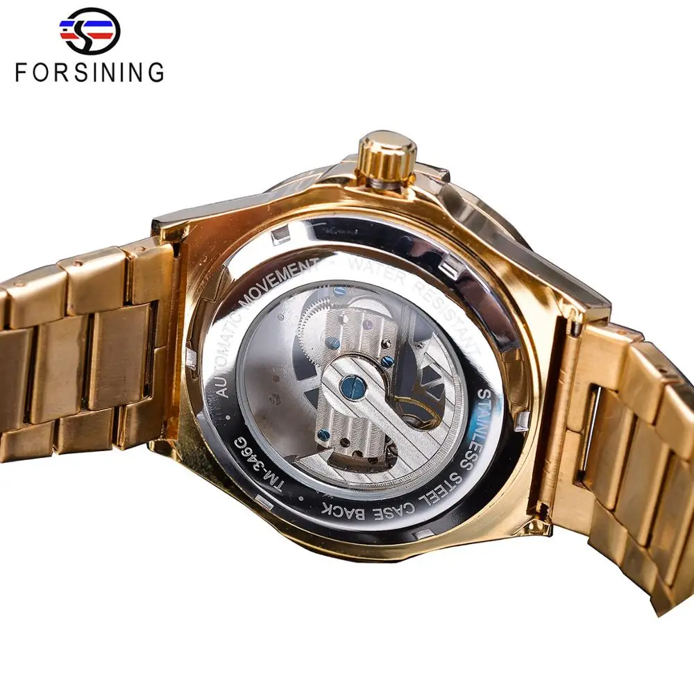 Мужские автоматические часы Forsining, с золотым мостом, с прозрачным ремешком из нержавеющей стали, мужские механические наручные часы