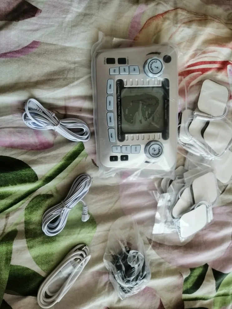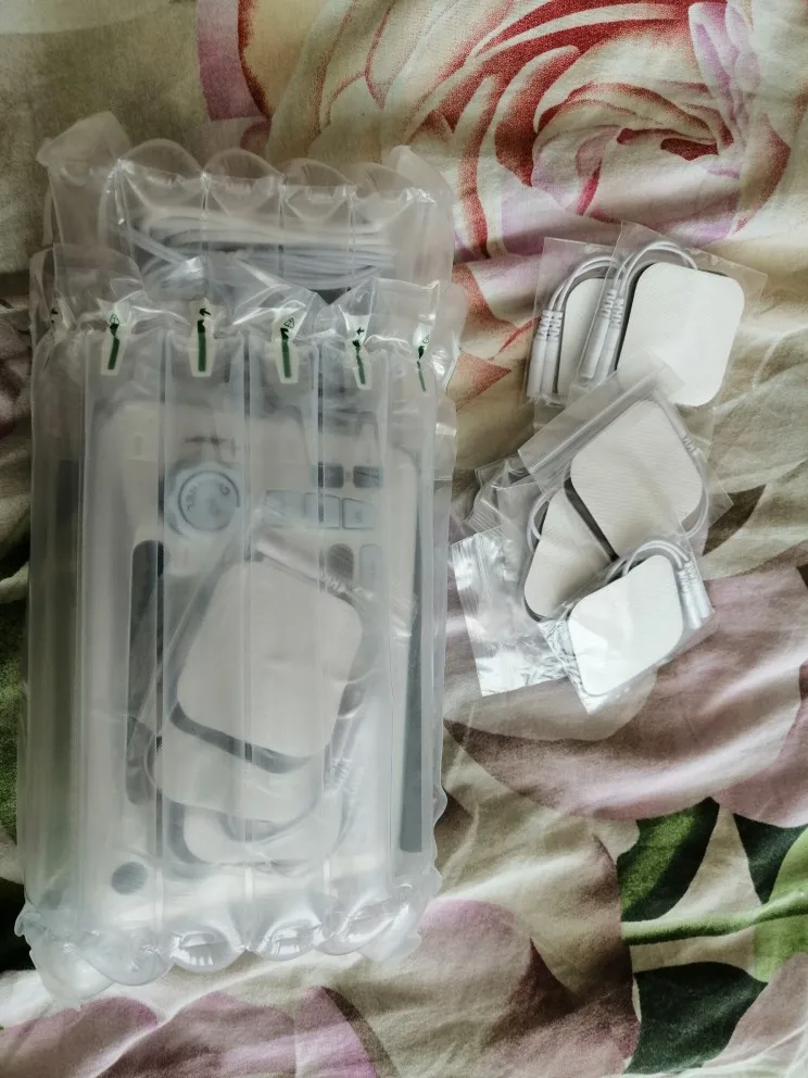 Приехал, все цело. Защитная наклейка на дисплее криво наклеена. Сетевой шнур 1метр, адаптер мелкий лёгкий по первому впечатления показался не надёжным было желание заменить, но в процессе эксплуатации после трех сеансов подряд греется не сильно. Провода от аппарата длинные но тонкие, требуют акуратного использования. Мощность тока хорошая, используем пока 6-ю из 20-и. Режимы 4 общие базовые которые можно включать отдельно друг от друга, и 6 программные на отдельные части тела состоящие из базовых работающих попеременно с разным интервалом времени. Есть таймер до 30-и минут по минутной регулировки. Батарейки думаю ставить смысла нет, от сети работает надёжней и экономней. В целом норм аппарат, все перед глазами каждое действие контролируется на дисплее.
