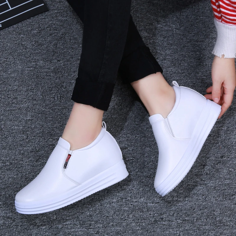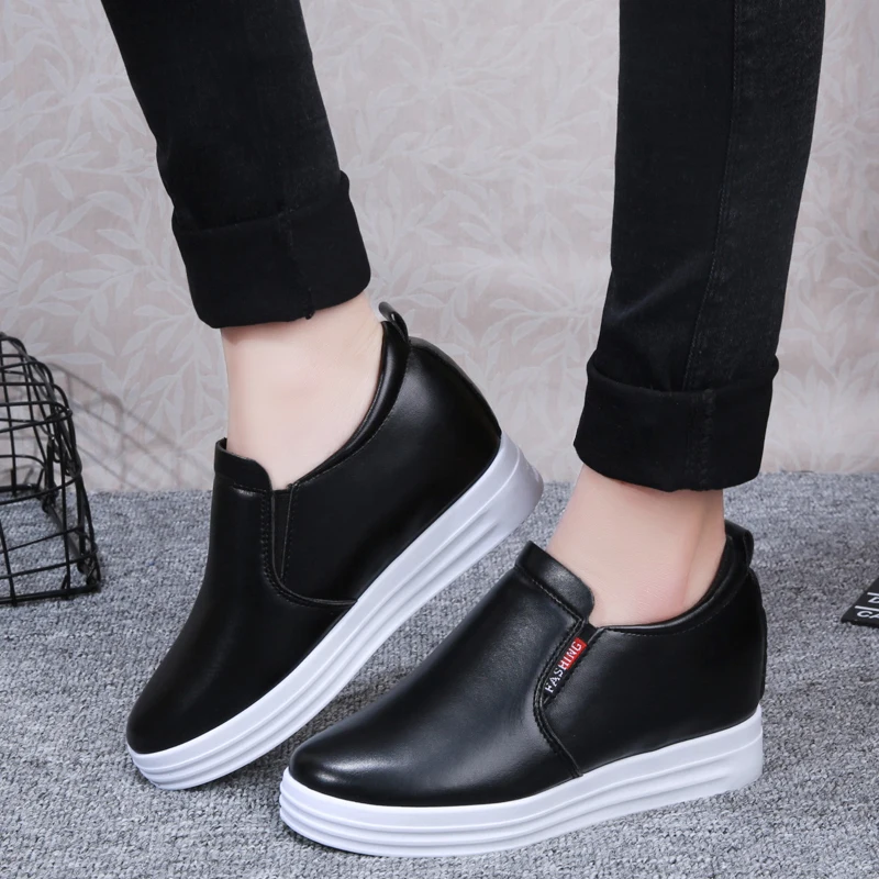 Лоферы на платформе, увеличивающие рост; Слипоны на плоской подошве; Кожаная повседневная обувь с боковой молнией; Женские Белая обувь на плоской подошве; zapatos mujer; 7670