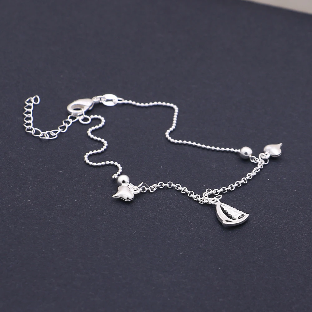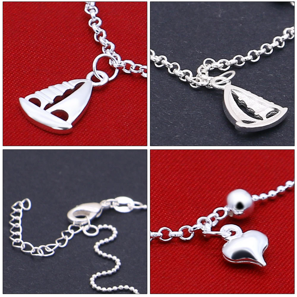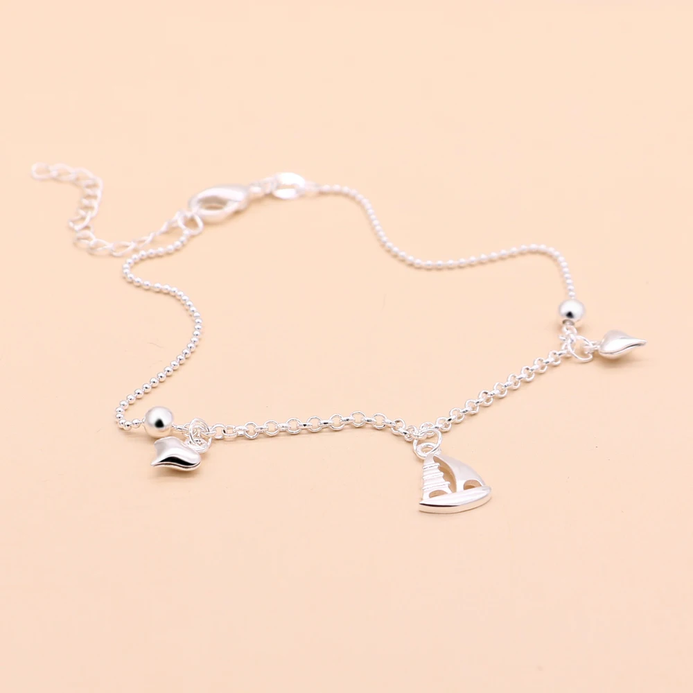 Браслет на ногу Женский, из серебра 925 пробы, с простым сердцем, браслеты на босую ногу